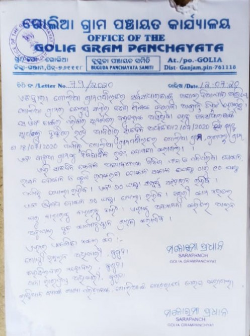 ବୁଗୁଡା (ଡ଼ କୁମୁଦ ଚନ୍ଦ୍ର ବେହେରା) : ବୁଗୁଡା ବ୍ଲକ ଅନ୍ତର୍ଗତ ଗୋଲିଆ ପଞ୍ଚାୟତକୁ ସରପଞ୍ଚ ମନୋରମା ପ୍ରଧାନ ୭ ଦିନ ପାଇଁ ୨୦ ଘଣ୍ଟିଆ ସଟ୍ ଡାଉନ ଘୋଷଣା କରିଛନ୍ତି। ଗୋଲିଆ ଗ୍ରାମର ତେଲୁଗୁ ସାହିର ଜଣେ ଶିକ୍ଷକ କରୋନା ପଜିଟିଭ ଚିହ୍ନଟ ହୋଇଥିବା ବେଳେ ସେ ଓ ତାଙ୍କ ପରିବାର ବହୁ ଲୋକଙ୍କ ସଂସ୍ପର୍ଶରେ ଆସିଥିବା ଯୋଗୁଁ ସଂକ୍ରମଣ ଆଶଙ୍କା ଦେଖାଦେଇଛି। ଏହାକୁ ଦୃଷ୍ଟିରେ ରଖି ସରପଞ୍ଚ ଶ୍ରୀମତୀ ପ୍ରଧାନ ଗୋଲିଆ ପଞ୍ଚାୟତ ଅନ୍ତର୍ଗତ ଗୋଲିଆ, କୁଶପଲ୍ଲୀ ଓ ବାଦୁଆ ଗ୍ରାମକୁ ଜୁଲାଇ ୧୨ ତାରିଖ ଠାରୁ ଜୁଲାଇ ୧୮ ତାରିଖ ପର୍ଯ୍ୟନ୍ତ ଦିବା ୧୦ ଘଣ୍ଟାରୁ ସକାଳ ୬ ଘଣ୍ଟା ପର୍ଯ୍ୟନ୍ତ ୨୦ ଘଣ୍ଟା ପାଇଁ ସଟ୍ ଡାଉନ ଘୋଷଣା କରିଛନ୍ତି। ସକାଳ ୬ ଟା ରୁ ୧୦ ଟା ପର୍ଯ୍ୟନ୍ତ ଅତ୍ୟାବଶ୍ୟକ ସାମଗ୍ରୀ ଦୋକାନ ଖୋଲା ରହିବ। ସେହି ସମୟ ମଧ୍ୟରେ ଜନସାଧାରଣ ନିଜର ଆବଶ୍ୟକ ଜିନିଷ କ୍ରୟ କରିବା ସମୟରେ ମାସ୍କ ପିନ୍ଧି ସାମାଜିକ ଦୂରତା ବଜାୟ ରଖିବେ। ମେଡ଼ିସିନ ଷ୍ଟୋର ସବୁ ସମୟରେ ଖୋଲା ରହିପାରିବ ଓ କୃଷି କାର୍ଯ୍ୟ ଚାଲିପାରିବ। ସଟ୍ ଡାଉନ ସମୟରେ ଘରୁ ବାହାରକୁ ନଆସିବା ପାଇଁ ସରପଞ୍ଚ ନିବେଦନ କରିଛନ୍ତି। ଏହି ବିଷୟ ନେଇ ବୁଗୁଡା ବିଡ଼ିଓ ତନ୍ମୟ ପାତ୍ର, ତହସିଲଦାର ସଂଗ୍ରାମ କେଶରୀ ଜେନା, ଆଇଆଇସି ଚିତ୍ତରଞ୍ଜନ ବେହେରା ଓ ଗୋଲିଆ ଶାଖା ଇଣ୍ଡିଆନ ବ୍ୟାଙ୍କ ପରିଚାଳକ ଙ୍କୁ ଅବଗତ କରାଯାଇଥିବା ସରପଞ୍ଚ ପ୍ରକାଶ କରିଛନ୍ତି। ଆଇନ ଅମାନ୍ୟ କଲେ କଠୋର ଦଣ୍ଡ ବ୍ୟବସ୍ଥା କରାଯାଇଛି।