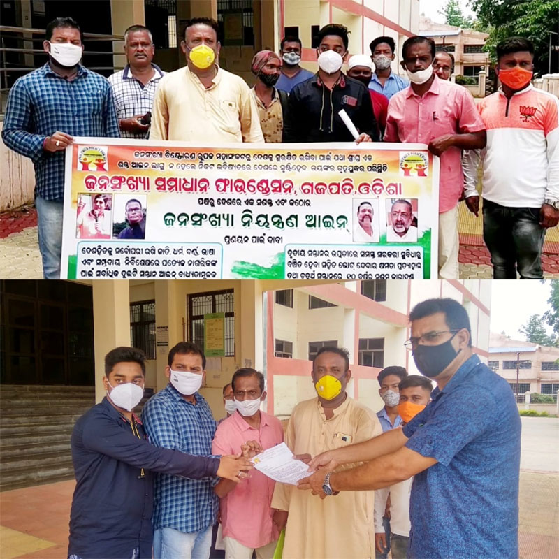 ଫାଉଣ୍ଡେସନର ଜିଲ୍ଲା ସଭାପତି ଶ୍ରୀ ପ୍ରଶାନ୍ତ କୁମାର ପାଳଙ୍କ ନେତୃତ୍ୱରେ ଫାଉଣ୍ଡେସନର କର୍ମକର୍ତ୍ତା ମାନେ ପାରଳାଖେମୁଣ୍ଡି ଠାରେ ଜିଲ୍ଲାପାଳଙ୍କ କାର୍ଯ୍ୟାଳୟ ପରିସରରୁ , ଜନସଂଖ୍ୟା ନିୟନ୍ତ୍ରଣ ଆଇନ ପ୍ରଣୟନ ଦାବୀରେ ବିଭିନ୍ନ ସ୍ଲୋଗାନ ମାନ ଦେଇ ଜିଲ୍ଲାପାଳଙ୍କ କାର୍ଯ୍ୟାଳୟ ଠାରେ ପହଞ୍ଚି ଜିଲ୍ଲାପାଳଙ୍କ ଅନୁପସ୍ଥିତିରେ ଉପଜିଲ୍ଲାପାଳଙ୍କୁ ପ୍ରଧାନମନ୍ତ୍ରୀଙ୍କ ଉଦ୍ଦେଶ୍ୟରେ ଦାବିପତ୍ର ଦେଇଥିଲେ।