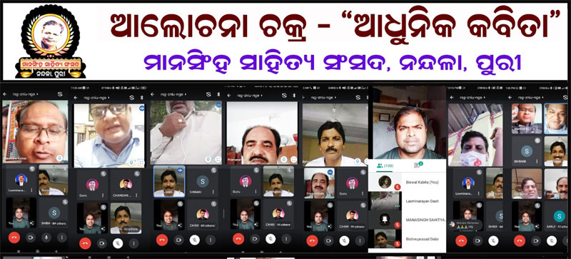 ମାନସିଂହ ସାହିତ୍ୟ ସଂସଦ, ନନ୍ଦଳା, ପୁରୀ ତରଫରୁ "ଆଧୁନିକ କବିତା" ଶୀର୍ଷକ ଆଲୋଚନା ଚକ୍ର ଭରଚୁଆଲ ମୋଡରେ ତା.୨୪.୦୭.୨୦୨୧ ରିଖରେ ଅନୁଷ୍ଠିତ ହୋଇ ଯାଇଛି । ଅନୁଷ୍ଠାନର ସଭାପତି ଶ୍ରୀଯୁକ୍ତ ବିଷ୍ଣୁପ୍ରସାଦ ଦଳେଇ ଆଲୋଚନା ଚକ୍ର ସମ୍ପର୍କରେ ସାମ୍ୟକ ସୂଚନା ଦେଇ, ଏହାକୁ ଆନୁଷ୍ଠାନିକ ଭାବେ ଆରମ୍ଭ କରିଥିଲେ । ପୁରୀ ସାମନ୍ତ ଚନ୍ଦ୍ରଶେଖର କଲେଜର ଓଡ଼ିଆ ବିଭାଗୀୟ ମୁଖ୍ୟ ଡ଼ଃ ଦିଲ୍ଲୀପ କୁମାର ସ୍ୱାଇଁ ଆଧୁନିକ କବିତାର ରୂପରେଖ ସମ୍ପର୍କରେ ଆଲୋଚନା କରିଥିଲେ । ବାଲେଶ୍ଵର ଫକୀରମୋହନ ବିଶ୍ୱବିଦ୍ୟାଳୟର ଓଡ଼ିଆ ବିଭାଗୀୟ ମୁଖ୍ୟ ଡ଼ଃ ମଣୀନ୍ଦ୍ର କୁମାର ମେହେର ଆଧୁନିକ କବିତାର ଆବଶ୍ୟକତା ଉପରେ ଆଲୋକପାତ କରିଥିଲେ । ତ୍ରିଧାରା ସାହିତ୍ୟ ସଂସଦ, ବ୍ରହ୍ମପୁରର ସମ୍ପାଦକ ଡ଼ଃ ଲଷ୍ମୀନାରାୟଣ ଦାଶ ଆଧୁନିକ କବିତା ଲେଖିବାର ବିଭିନ୍ନ କୌଶଳ ସମ୍ପର୍କରେ ଆଲୋଚନା କରିଥିଲେ । ପରିଶେଷରେ ସହିତ୍ୟିକମାନଙ୍କ ବିଭିନ୍ନ ପ୍ରଶ୍ନର ଉତ୍ତରଦେଇ ସନ୍ଦେହ ମୋଚନ କରିଥିଲେ ଡ଼ଃ ଦିଲ୍ଲୀପ କୁମାର ସ୍ୱାଇଁ, ଡ଼ଃ ମଣୀନ୍ଦ୍ର କୁମାର ମେହେର ଓ ଡ଼ଃ ଲଷ୍ମୀନାରାୟଣ ଦାଶ ।