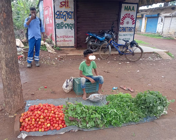 ଅଫିସ ଆଗରେ ପରିବା ବିକୁଛନ୍ତି ଛୋଟ ଛୋଟ ପିଲା