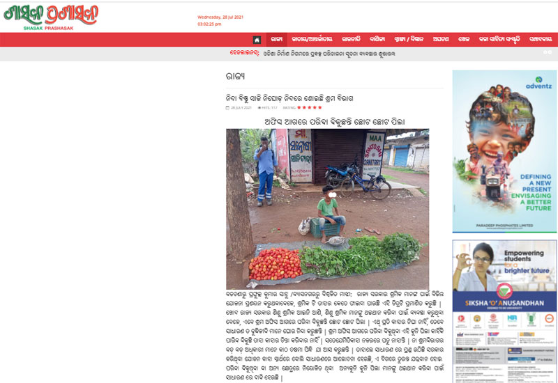 ବ୍ୟାସନଗର : ଆଜି ଶାସକ ପ୍ରଶାସକ ରେ ଶିଶୁ ଶ୍ରମିକ ନିଉଜ୍ ପରିବେଷଣ ର ଏକ ଘଣ୍ଟା ନ ପୁରୁଣୁ, ଶ୍ରମ ବିଭାଗ ତାର ଅନୁସନ୍ଧାନ କରି ସମ୍ପୃକ୍ତ ଶିଶୁକୁ ତାର ବାପା ମାଆଙ୍କୁ ଡାକି ହସ୍ତାନ୍ତର କରିଛନ୍ତି | ଏହି ପରି ଯାଜପୁର ଜିଲ୍ଲାରେ ବିଭିନ୍ନ ଜାଗାରେ କାମ କରୁଥିବା ଶିଶୁ ମାନଙ୍କୁ ଚିହ୍ନଟ କରି ଥଇଥାନ କଲେ ବହୁତ ଶିଶୁ ଶ୍ରମିକ ମୁଖ୍ୟ ସ୍ରୋତ କୁ ଫେରିଆସଂତେ ବୋଲି ବୁଦ୍ଧିଜୀବୀ ମାନେ ମତଦେଇଛନ୍ତି |
