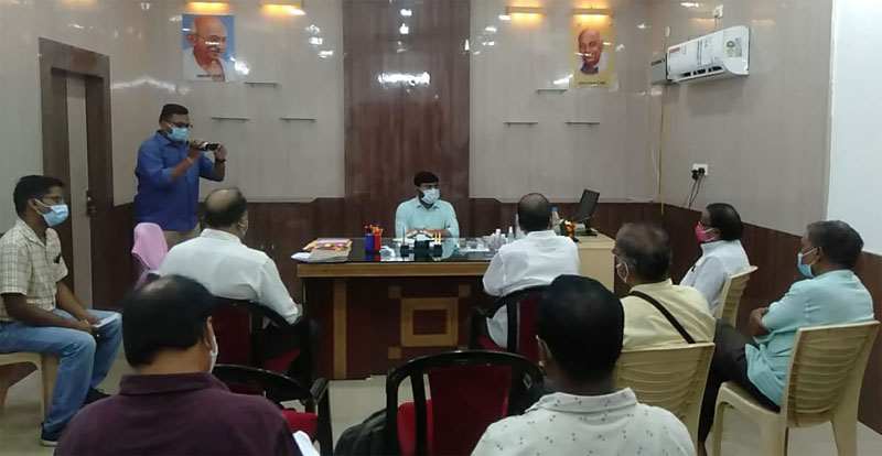 ଟିଟିଲାଗଡ, ( ଗୌରବ ଦର୍ଜୀ)-କରୋନା କଟକଣା କୁ ନେଇ ଅନେକ ଦିନ ରୁ ଧାର୍ମିକନୁଷ୍ଠାନ ଗୁଡିକ ବନ୍ଦ ରହିଥିଲା। କରୋନା ମହାମାରୀ ର ସଂକ୍ରମଣ କମୁଥିବାରୁ ରାଜ୍ୟ ସରକାର ଧାର୍ମିକନୁଷ୍ଠାନ ଗୁଡ଼ିକ ଖୋଲିବା ପାଇଁ ଅନୁମତି ଦେଇଛନ୍ତି। ଏହି ପରିପ୍ରେକ୍ଷୀରେ ରେ ଟିଟିଲାଗଡ ଉପଖଣ୍ଡ ର ସମସ୍ତ ଧାର୍ମିକନୁଷ୍ଠାନ ଗୁଡିକୁ ଖୋଲିବା ପାଇଁ ଟିଟିଲାଗଡ ଉପଜିଲ୍ଲାପାଳ ମନୋଜ ସତ୍ୟୱାନ ମହାଜନ ଉପଖଣ୍ଡ ର ସମସ୍ତ ଧାର୍ମିକନୁଷ୍ଠାନ ର ସଦସ୍ୟ ଙ୍କୁ ଆଲୋଚନା ପାଇଁ ନିମନ୍ତ୍ରଣ କରିଥିଲେ। ଉପଜିଲ୍ଲାପାଳ ଙ୍କ କାର୍ଯ୍ୟଳୟ ରେ ଅନୁଷ୍ଠିତ ଏହି ବୈଠକରେ ଟିଟିଲାଗଡ ସହର ର ବିଭିନ୍ନ ମନ୍ଦିର ର ପୂଜକ, ସେବାୟତ ଓ ଟ୍ରଷ୍ଟ ବୋର୍ଡ ସଦସ୍ୟ ଉପସ୍ଥିତ ଥିଲେ। ମନ୍ଦିର ଗୁଡ଼ିକ ଖୋଲିବାକୁ ନେଇ ଆଲୋଚନା କରିଥିଲେ।