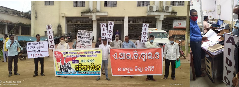 ଯାଜପୁର ରୋଡ/ବଡ଼ଚଣା/ପ୍ରଫୁଲ୍ଲ ସାହୁ, :ଅଲ ଇଣ୍ଡିଆ ଡ଼ି. ୱାଇ. ଓ (AIDYO) ଯାଜପୁର ଜିଲ୍ଲା କମିଟି ପକ୍ଷରୁ ମଧ୍ୟପ୍ରଦେଶର ରାଜଧାନୀ ଭୋପାଳ ଠାରେ ହଜାର ହଜାର ବେକାର ଯୁବକ ନିଯୁକ୍ତି ଦାବିକରି ଶୋଭାଯାତ୍ରା କରୁଥିବା ସମୟରେ ମଧ୍ୟପ୍ରଦେଶ ସରକାରଙ୍କ ନିର୍ଦ୍ଦେଶରେ ପୋଲିସ ଅତ୍ୟନ୍ତ ଅମାନବିକ ଭାବେ ଲାଠିଚାର୍ଜ କରି ଆନ୍ଦୋଳନକୁ ଦମନ କରିବା ଘଟଣାର ଦୃଢ ନିନ୍ଦା କରିବା ସହିତ ଜିଲ୍ଲାପାଳ ଅଫିସ ସମ୍ମୁଖରେ ବିକ୍ଷୋଭ ପ୍ରଦର୍ଶନ କରାଯାଇଅଛି । ନିଯୁକ୍ତି ଦାବି କରୁଥିବା ଯୁବକମାନଙ୍କୁ ନିଯୁକ୍ତି ବଦଳରେ ମଧ୍ୟପ୍ରଦେଶ ସରକାରଙ୍କ ପୋଲିସର ଲାଠିପ୍ରହାର ଓ ଦମନଲୀଳାକୁ ବିରୋଧ କରି ଆଜି ସଂଗଠନର ଅଲ ଇଣ୍ଡିଆ କମିଟି ସାରା ଭାରତ ପ୍ରତିବାଦ ଦିବସ ଡାକରା ଦେଇଛି । ଏହି ପ୍ରତିବାଦ ଦିବସ ଉପଲକ୍ଷେ ସଂଗଠନ ପକ୍ଷରୁ ଗିରଫ କରାଯାଇଥିବା ଆନ୍ଦୋଳନ କାରୀଙ୍କୁ ବିନା ସର୍ତ୍ତରେ ଖଲାସ କରିବା, ସେମାନଙ୍କ ଉପରୁ ମିଥ୍ୟା ମକଦ୍ଦମା ପ୍ରତ୍ୟାହାର କରିବା, ସମସ୍ତ ବେକରଙ୍କୁ ନିଯୁକ୍ତି ଦେବା ଓ ଗଣଆନ୍ଦୋଳନରେ ପୋଲିସ ହସ୍ତକ୍ଷେପ ବନ୍ଦ କରିବା ପ୍ରଭୂତି ଦାବିରେ ଜିଲ୍ଲାପାଳଙ୍କ ଅଫିସ ସମ୍ମୁଖରେ ବିକ୍ଷୋଭ ପ୍ରଦର୍ଶନ କରାଯାଇ ଦାବିପତ୍ର ପ୍ରଦାନ କରାଯାଇଥିଲା । ସାରାଦେଶରେ ସମସ୍ତ ବେକରଙ୍କୁ ନିଯୁକ୍ତି ନ'ଦିଆଯିବା ପର୍ଯ୍ୟନ୍ତ ଆନ୍ଦୋଳନକୁ ଆହୁରି ଦୁର୍ବାର କରି ଗଢି ତୋଳିବା ପାଇଁ ଜିଲ୍ଲା ସଭାପତି ଅଭିମନ୍ୟୁ ମଲିକଙ୍କ ସଭାପତିତ୍ୱରେ ଆୟୋଜିତ ପ୍ରତିବାଦ ସଭାରେ ଜଗବନ୍ଧୁ ମଲ୍ଲିକ, ଚୈତନ୍ୟ ମହାରଣା, ପ୍ରଶାନ୍ତ ସ୍ୱାଇଁ, କିଶୋର ମଲ୍ଲିକ, ପ୍ରଫୁଲ ମଳିକ, କେଶବ ମଳିକ, କବି ସେଠୀ ପ୍ରମୁଖ ଚେତାବନୀ ଦେଇଥିଲେ ।