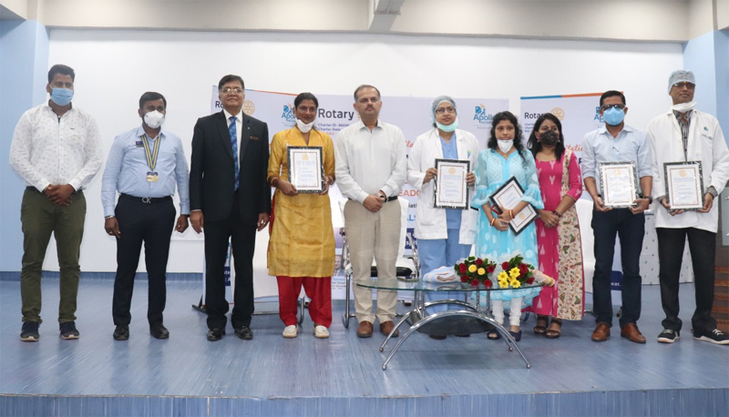 ଡକ୍ଟର ଆଲୋକ ଶ୍ରୀବାସ୍ତବ,ମୁଖ୍ୟ ପରିଚାଳକ, ଆପୋଲୋ ହସ୍ପିଟାଲ ଏବଂ କ୍ଲବର ସଭାପତି ରୋଟାରିଆନ ସନ୍ତୋଷ ସେନାପତି ସମ୍ମାନିତ ଡାକ୍ତରମାନଙ୍କୁ ରୋଟାରୀ ଏବଂ ରୂପା ମୁଦ୍ରାର ଫୋର ୱେ ଟେଷ୍ଟ୍ ପ୍ରଦାନ କରିଥିଲେ ଏବଂ ସେମାନଙ୍କୁ କୃତଜ୍ଞତା ପ୍ରମାଣପତ୍ର ମଧ୍ୟ ପ୍ରଦାନ କରିଥିଲେ |