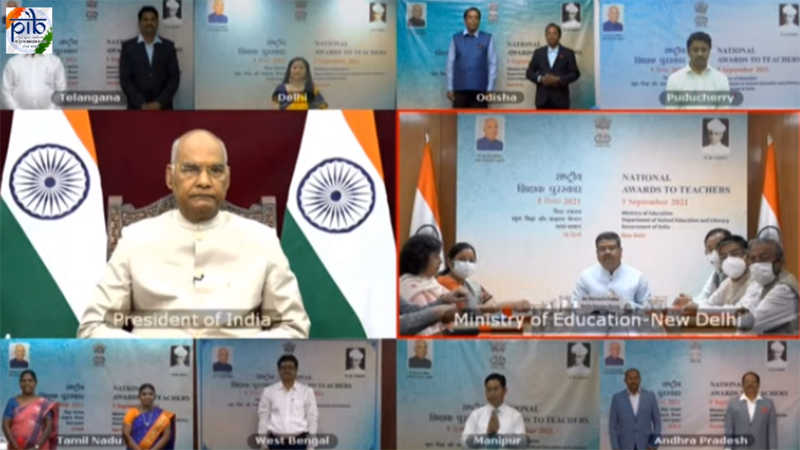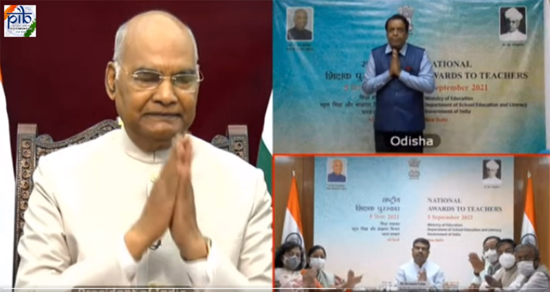 ନୂଆଦିଲ୍ଲୀ– ଛାତ୍ରଛାତ୍ରୀଙ୍କ ବହୁମୁଖୀ ପ୍ରତିଭାକୁ ଚିହ୍ନିବାରେ ଶିକ୍ଷକ ମାନଙ୍କର ବଡ ଭୂମିକା ରହିଛି ବୋଲି ରବିବାର ଗୁରୁ ଦିବସ ଅବସରରେ ଭର୍ଚ୍ଚୁଆଲ ପ୍ଲାଟଫର୍ମ ମାଧ୍ୟମରେ ଆୟୋଜିତ ‘ଜାତୀୟ ଶିକ୍ଷକ ପୁରସ୍କାର’ ସମାରୋହରେ ମହାମହିମ ରାଷ୍ଟ୍ରପତି ରାମନାଥ କୋବିନ୍ଦ ଯୋଗଦେଇ କହିଛନ୍ତି । ସେହିପରି କେନ୍ଦ୍ର ଶିକ୍ଷା, ଦକ୍ଷତା ବିକାଶ ଏବଂ ଉଦ୍ୟମିତା ମନ୍ତ୍ରୀ ଧର୍ମେନ୍ଦ୍ର ପ୍ରଧାନ ରାଷ୍ଟ୍ରପତିଙ୍କ ଠାରୁ ଜାତୀୟ ଶିକ୍ଷକ ପୁରସ୍କାର ଗ୍ରହଣ କରିଥିବା ଓଡ଼ିଶାର ୨ ଜଣ ଶିକ୍ଷକଙ୍କ ସମେତ ୪୪ ଜଣ ଶିକ୍ଷକଙ୍କୁ ଶୁଭେଚ୍ଛା ଜଣାଇବା ସହ ଶିକ୍ଷକ ସମାଜ ଏକବିଂଶ ଶତାବ୍ଦୀରେ ଭାରତର ଭବିଷ୍ୟତକୁ ପରିବର୍ତନ କରିବେ ବୋଲି କହିଛନ୍ତି ।