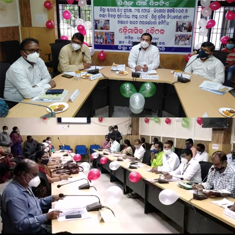 ଗଜପତି ଜିଲ୍ଲାପାଳ ଶ୍ରୀ ଲିଙ୍ଗରାଜ ପଣ୍ଡା ଏଥିରେ ଅଧ୍ୟକ୍ଷତା କରିଥିବା ବେଳେ ଏହି କାର୍ଯ୍ୟକ୍ରମରେ ଶିଶୁ ଯତ୍ନ ଓ ସୁରକ୍ଷା , କିଶୋରୀ ଶସକ୍ତିକରଣ , ବାଲ୍ୟ ବିବାହ- ଶିଶୁ ଯୌନ ନିର୍ଯ୍ୟାତନା-ଶିଶୁ ଶ୍ରମିକ- ଶିଶୁ ଚାଲାଣ ପ୍ରଭୃତି ରୋକିବା ସମେତ ଚାଇଲଡ଼ ଲାଇନ ପରାମର୍ଶ ଦାତା କମିଟି ଉପରେ ଆଲୋଚନା ହୋଇଥିଲା । ମୁଖ୍ୟତଃ ବୈଠକରେ ସମ୍ପୃକ୍ତ ଲାଇନ ବିଭାଗ ଗୁଡିକ ପକ୍ଷରୁ ଉପରୋକ୍ତ କ୍ଷେତ୍ରରେ କିଭଳି ବିଭାଗୀୟ କାର୍ଯ୍ୟକ୍ରମ ସବୁ କାର୍ଯ୍ୟକାରୀ ହେଉଛି ଓ ତାର ଅଗ୍ରଗତି କେତେ ସଫଳ ହୋଇପାରିଛି ସେ ସମ୍ପର୍କରେ ବିସ୍ତୃତ ଭାବେ ଆଲୋଚନା ହୋଇଥିଲା।