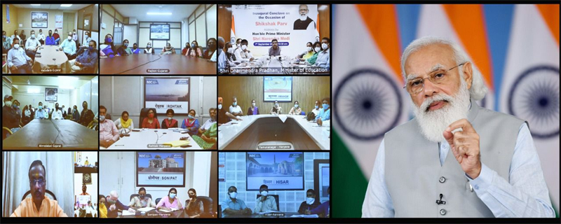 ଶିକ୍ଷକ ପର୍ବ ଅବସରରେ ଆଜି ନୂଆ ଜାତୀୟ ଶିକ୍ଷା ନୀତି ଅନ୍ତର୍ଗତ ବିବିଧ ଏବଂ ମହତ୍ୱପୂର୍ଣ୍ଣ ଯୋଜନାର ଶୁଭାରମ୍ଭ କରିବା ଏବଂ ଶିକ୍ଷା ମନ୍ତ୍ରଣାଳୟ ଦ୍ୱାରା ରାଷ୍ଟ୍ରୀୟ ଶିକ୍ଷା ନୀତିକୁ କାର୍ଯ୍ୟକାରୀ କରିବା ପାଇଁ ସମୟ ସମୟରେ କରାଯାଇଥିବା ପ୍ରୟାସ ଉପରେ ପ୍ରଧାନମନ୍ତ୍ରୀ ମାର୍ଗଦର୍ଶନ କରୁଛନ୍ତି । ପ୍ରଧାନମନ୍ତ୍ରୀଙ୍କ କହିବାନୁସାରେ ଏ ସମସ୍ତ ପଦକ୍ଷେପ ବିଶେଷ ଭାବରେ ନିଷ୍ଠା , ଟକିଂ ବୁକସ ଏବଂ ବିଦ୍ୟାଞ୍ଜଳି ୨.୦ ଜାତୀୟ ଶିକ୍ଷା ନୀତି ଅନ୍ତର୍ଗତ ଶିକ୍ଷାର ସମାବେଶୀ ଏବଂ ସମାନତା ଆଣିବାରେ ଏବଂ ସବକା ସାଥ୍,
