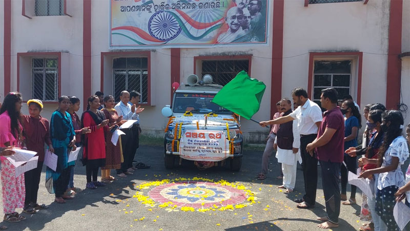 ନବରଙ୍ଗପୁର/ଅଶୋକ ସାହୁ : ନବରଙ୍ଗପୁର ଜିଲ୍ଲାପାଳ ଙ୍କ କାର୍ଯ୍ୟାଳୟ ପରିସରରେ ବିଶ୍ୱ ମିତ ଵ୍ୟୟୀତା ଦିବସ ପାଳନ ଅବସରରେ ମିତ୍ୟ ଵ୍ୟୟୀ ହୋଇ ସଞ୍ଚୟ କରନ୍ତୁ, ଅଯଥା ଖର୍ଚ୍ଚ ରୁ ଦୁରେଇ ରୁହନ୍ତୁ, ସମ୍ପର୍କରେ ଜିଲ୍ଲାରେ ବ୍ୟାପକ ଜନ ସଚେତନତା ସୃଷ୍ଟି କରିବା ନିମନ୍ତେ ସଞ୍ଚୟ ରଥ ପରିକ୍ରମା ର ଶୁଭାରମ୍ଭ ନବରଙ୍ଗପୁର ଜିଲ୍ଲାପାଳ ଡଃ କମଳ ଲୋଚନ ମିଶ୍ରଙ୍କ ଦ୍ଵାରା ହୋଇ ଯାଇଛି। ଏହି ସଚେତନତା ଅଭିଯାନ ରେ ଯେକୌଣସି ସନ୍ଧିଗ୍ଧ, ଅଣ ବ୍ୟାଙ୍କିଙ୍କ, ବେସରକାରୀ, ଅର୍ଥ ଲଗାଣକାରୀ ସଂସ୍ଥା ଠାରୁ ଦୁରେଇ ରହି ଠକାମି ପଶ୍ଚାତପ ରୁ ମୁକ୍ତ ରହି ଡାକଘର ଓ ରାଷ୍ଟ୍ରାୟତ ବ୍ୟାଙ୍କ ଭଳି ଭାରତୀୟ ରିଜେର୍ଭେ ବ୍ୟାଙ୍କ ଦ୍ୱାରା ସ୍ୱୀକୃତି ପ୍ରାପ୍ତ ଅନୁଷ୍ଠାନ ରେ ହିଁ ସଞ୍ଚୟ କରନ୍ତୁ ବୋଲି ଜିଲ୍ଲାପାଳ ଡଃ ମିଶ୍ର ପରାମର୍ଶ ଦେଇଥିଲେ। ଏହି ସଞ୍ଚୟ ରଥ ଜିଲ୍ଲାର ସମସ୍ତ ବ୍ଲକ କୁ ପରିକ୍ରମା କରି ବ୍ୟାପକ ସଚେତନତା ସୃଷ୍ଟି କରିବା ପାଇଁ ସ୍ଥିର କରାଯାଇଛି ।