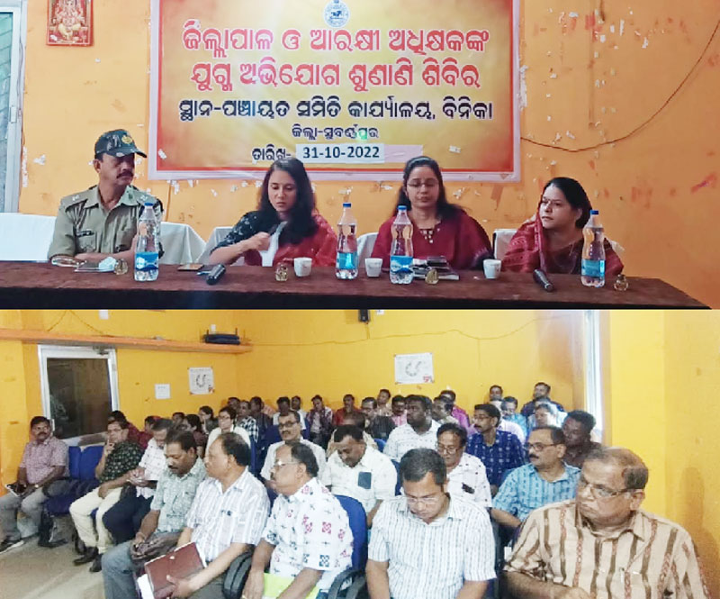 ସୁବର୍ଣ୍ଣପୁର,( ପ୍ରକାଶ କୁମାର ହାତୀ): ସୁବର୍ଣ୍ଣପୁର ଜିଲ୍ଲା ସ୍ତରୀୟ ଯୁଗ୍ମ ଅଭିଯୋଗ ଶୁଣାଣି ବିନିକା ବ୍ଲକ ସଭାଗୃହ ଠାରେ ଅନୁଷ୍ଠିତ ହୋଇଯାଇଛି l ଜିଲ୍ଲପାଳ ଅବୋଲୀ ସୁନିଲ ନରୱଣେ ଓ ଅତିରିକ୍ତ ଆରକ୍ଷୀ ଅଧିକ୍ଷକ ଶ୍ରୀ ହେମନ୍ତ କୁମାର ପାଢ଼ୀ ଯୁଗ୍ମ ଅଭିଯୋଗ ଶୁଣାଣି ଶିବିରରେ ଯୋଗଦାନ କରି ଜନସାଧାରଣ ଙ୍କ ବିଭିନ୍ନ ଆପତ୍ତି ଓ ସମସ୍ୟା ନିହିତ ୫୭ ଗୋଟି ଅଭିଯୋଗ ଦରଖାସ୍ତ ଗ୍ରହଣ କରିଥିଲେ l ତନ୍ମଧ୍ୟରେ ବ୍ୟକ୍ତିଗତ ଦରଖାସ୍ତ ୫୪ ଗୋଟି ଓ ସାମୁହିକ ଦରଖାସ୍ତ ୩ ଗୋଟି ରହିଥିବା ସୂଚନା ପ୍ରଦାନ କରାଯାଇଛି l ଗ୍ରହଣ କରାଯାଇଥିବା ଅଭିଯୋଗ ଦରଖାସ୍ତ କୁ ନିର୍ଦ୍ଧିଷ୍ଟ ସମୟ ମଧ୍ୟରେ ସମାଧାନ ପାଇଁ ସମ୍ପୃକ୍ତ ବିଭିନ୍ନ ବିଭାଗୀୟ ଅଧିକାରୀଙ୍କ ଦ୍ୱାରା ତୁରନ୍ତ ସମାଧାନ ନିମନ୍ତେ ପ୍ରେରଣ କରାଯାଇଛି l