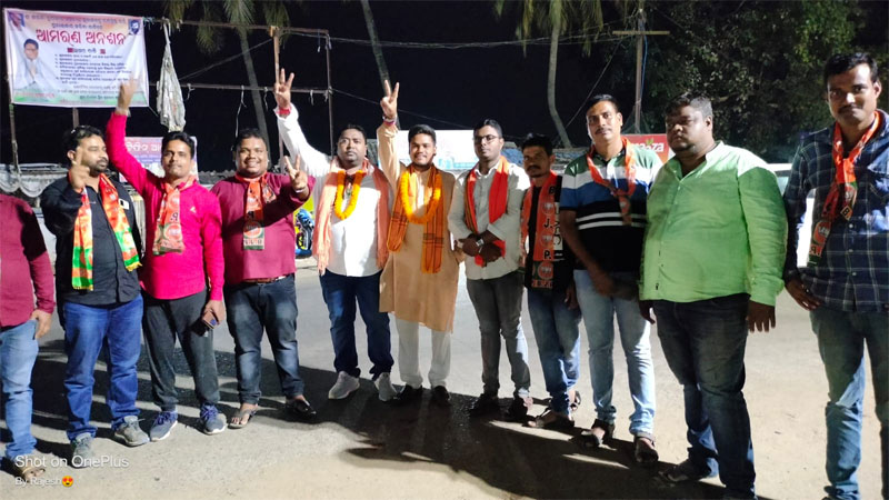 ଜଗତସିଂହପୁର/ରାକେଶ କୁମାର ରାୟ :- ଧାମନଗରରେ ଭାରତୀୟ ଜନତା ପାର୍ଟିର ଐତିହାସିକ ବିଜୟ ଉପଲକ୍ଷେ ତିର୍ତ୍ତୋଲ ବିଧାନସଭା ନିର୍ବାଚନ ମଣ୍ଡଳୀ ଯୁବ ନେତା ତଥା ରାଜ୍ୟ ସମ୍ପାଦକ ଭାରତୀୟ ଜନତା ଯୁବମୋର୍ଚ୍ଚା ଡକ୍ଟର ପ୍ରକାଶ ଚନ୍ଦ୍ର ଦଳାଇ ଙ୍କ ଆଗ୍ରହ କ୍ରମେ ଯୁବମୋର୍ଚ୍ଚା ଜିଲ୍ଲା ସଭାପତି ମାନସ କୁମାର ମହାପାତ୍ର ଙ୍କ ନେତୃତ୍ବରେ ତିର୍ତ୍ତୋଲ ନିର୍ବାଚନ ମଣ୍ଡଳୀ ର ଜଇପୁର ଛକ ରେ ବାଜା ବଜାଇ , ବାଣ ଫୁଟାଇ , ମିଠା ଖୁଆଇ , ଭାରତ ମାତା ଙ୍କ ଜୟ ଜୟ କାର କରି ବିଜୟ ଉତ୍ସବ ପାଳନ କରାଗଲା