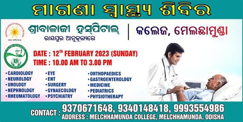 ମେଲଛାମୁଣ୍ଡା(ମନୋଜ ଭୋଇ)-ମେଲଛାମୁଣ୍ଡାସ୍ଥିତ କଲେଜ ପରିସରରେ ଆସନ୍ତା କାଲି ରବିବାର ଦିନ ୧୦ଟାରୁ ଅପରାହ୍ନ ୩ଟା ପର୍ଯ୍ୟନ୍ତ ରାୟପୁରସ୍ଥିତ ଶ୍ରୀ ବାଲାଜୀ ହସପିଟାଲ ଆନୁକୁଲ୍ୟରେ ଏବଂ କଲେଜ କତୃପକ୍ଷ, ଏନଏସଏସ, ରେଡକ୍ରସ ଓ ଲାୟନ୍ସ କ୍ଳବର ମିଳିତ ସହଯୋଗରେ ଏକ ଦିବସୀୟ ମାଗଣା ସ୍ୱାସ୍ଥ୍ୟ ଶିବିର ଅନୁଷ୍ଠିତ ହେବ । ସ୍ୱାସ୍ଥ୍ୟ ଶିବିରରେ ଶ୍ରୀ ବାଲାଜୀ ହସପିଟାଲର କାଡିଓଲୋଜି, ନ୍ୟୁରୋଲୋଜି, ୟୁରୋଲୋଜି, ନେଫ୍ରୋଲୋଜି, ର୍ୟୁମାଟୋଲୋଜି, ଚକ୍ଷୁ, ଇଏନଟି, ସରଜରି, ଗ୍ୟାନୋକୋଲୋଜି, ଫିଚିଆଟ୍ରି, ଅର୍ଥୋପେଡିକ, ଗ୍ୟାଷ୍ଟ୍ରୋଲୋଜି, ମେଡିସିନ, ପେଡିଆଟ୍ରିକ, ଫିଜିଓଥ୍ରାପି ଆଦି ବିଭାଗର ବିଶେଷଜ୍ଞ ଡାକ୍ତର ମେନେ ଉପସ୍ଥିତ ରହି ଚିକିତ୍ସାର ପରାମର୍ଶ ଦେବେ । ଏପରି ର୍ଦୁଲଭ ବିଭାଗ ଗୁଡିକର ଚିକିତ୍ସା ପାଇଁ ମେଲଛାମୁଣ୍ଡା ଅଂଚଳବାସୀ ବିଭିନ୍ନ ଦୂର ସ୍ଥାନକୁ ଚିକିତ୍ସା ପାଇଁ ଯାଇ ଖର୍ଚ୍ଚାନ୍ତର ଶିକାର ହେଉଛନ୍ତି । ତେଣୁ ଏପରି ସୁଯୋଗ ନିଜ ଅଂଚଳରେ ପାଇ ହାତ ଛଡା ନ କରିବା ପାଇଁ ଜନସାଧାରଣଙ୍କୁ ବିଭିନ୍ନ ସାମାଜିକ ଅନୁଷ୍ଠାନ ଅନୁରୋଧ କରିଛନ୍ତି ।