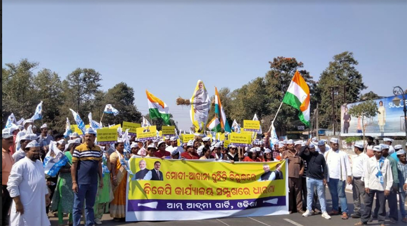 ମୋଦି-ଅଦାନୀ ମହା ଦୁର୍ନୀତି ବିରୁଦ୍ଧରେ ବିଜେପି ରାଜ୍ୟ କାର୍ଯ୍ୟାଳୟ ସମ୍ମୁଖରେ ଆମ୍ ଆଦମୀ ପାର୍ଟି ଓଡ଼ିଶାର ବିକ୍ଷୋଭ ପ୍ରଦର୍ଶନ