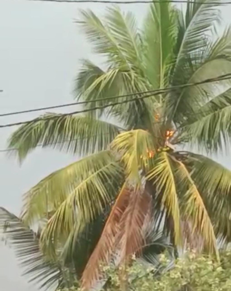 ବିଜୁଳି ମାଡ଼ରେ ଜଳିଲା ନଡ଼ିଆ ଗଛ