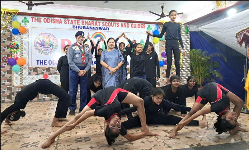 ଭୁବନେଶ୍ୱର : ଓଡ଼ିଶା ରାଜ୍ୟ ଭାରତ ସ୍କାଉଟସ୍ ଓ ଗାଇଡ଼୍ସ୍ ସଂସ୍ଥା ଆନୁକୂଲ୍ୟରେ ତା୨୩.୩.୨୦୨୩ରିଖ ଦିନ ରାଜ୍ୟ ମୁଖ୍ୟ କାର୍ଯ୍ୟାଳୟ ପରିସରରେ ଓଡ଼ିଶାର ୨୮ ଜିଲ୍ଲାରୁ ଆସିଥିବା ୮୦୦ ସ୍କାଉଟ୍ ଗାଇଡ଼୍ ମାନଙ୍କୁ ନେଇ ଅନୁଷ୍ଠିତ ହୋଇଥିବା ଶିବିର “ରେନବୋ ”ର ତା୨୫.୩.୨୦୨୩ ଦିନ ହେଉଛି ଉଦ୍ୟାପନୀ ଉତ୍ସବ । ଜାତୀୟ ଉପସଭାପତି ତଥା ରାଜ୍ୟ ମୁଖ୍ୟ କମିଶନର ଡଃ କାଳି ପ୍ରସାଦ ମିଶ୍ରଙ୍କ ପୌରୋହିତ୍ୟରେ ଅନୁଷ୍ଠିତ ଉଦଯାପନୀ ଉତ୍ସବରେ ସମ୍ମାନିତ ଅତିଥି ଭାବେ ଡଃ. (ଶ୍ରୀମତୀ) ମିନତୀ ବେହେରା, ମହିଳା କମିଶନ, ଓଡ଼ିଶା ଯୋଗଦାନ କରି ଛାତ୍ରଛାତ୍ରୀମାନଙ୍କୁ ଉତ୍ସାହିତ କରିଥିଲେ ।