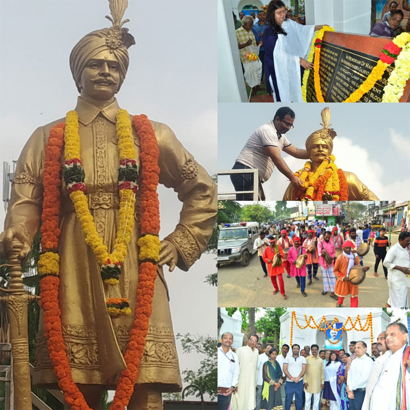ସହରରେ ବରପୁତ୍ରମାନଙ୍କର ପ୍ରତିମୂର୍ତ୍ତିରେ ପୁଷ୍ପମାଲ୍ୟ ଅର୍ପଣ ସମୟରେ ବିରବାଦ୍ୟ ଓ ପାଇକ ଆଖଡ଼ା କଳା ପ୍ରଦର୍ଶନ ଦେଖାଇ ସହର ପରିକ୍ରମା କରିଥିଲେ।