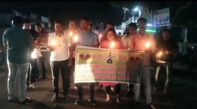 ଜାମୁକାଶ୍ମୀରରେ ଆତଙ୍କବାଦୀ ଆକ୍ରମଣରେ ସହିଦ 5ଜଣ ଯବାନଙ୍କ ପାଇଁ କେଣ୍ଡେଲ ଶୋଭାଯାତ୍ରା