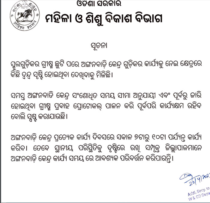 ରାଜ୍ୟ ଅଙ୍ଗନବାଡିଗୁଡିକ ପାଇଁ ମହିଳା ଶିଶୁ ବିକାଶ ବିଭାଗର ସ୍ପଷ୍ଟୀକରଣ 22 April 2023 Hits: 240 Rating: ( 1 Rating ) User Rating: 5 / 5 Please Rate Vote 1 Vote 2 Vote 3 Vote 4 Vote 5 000s2sdefault twitter twitter facebook google plus whatsapp share