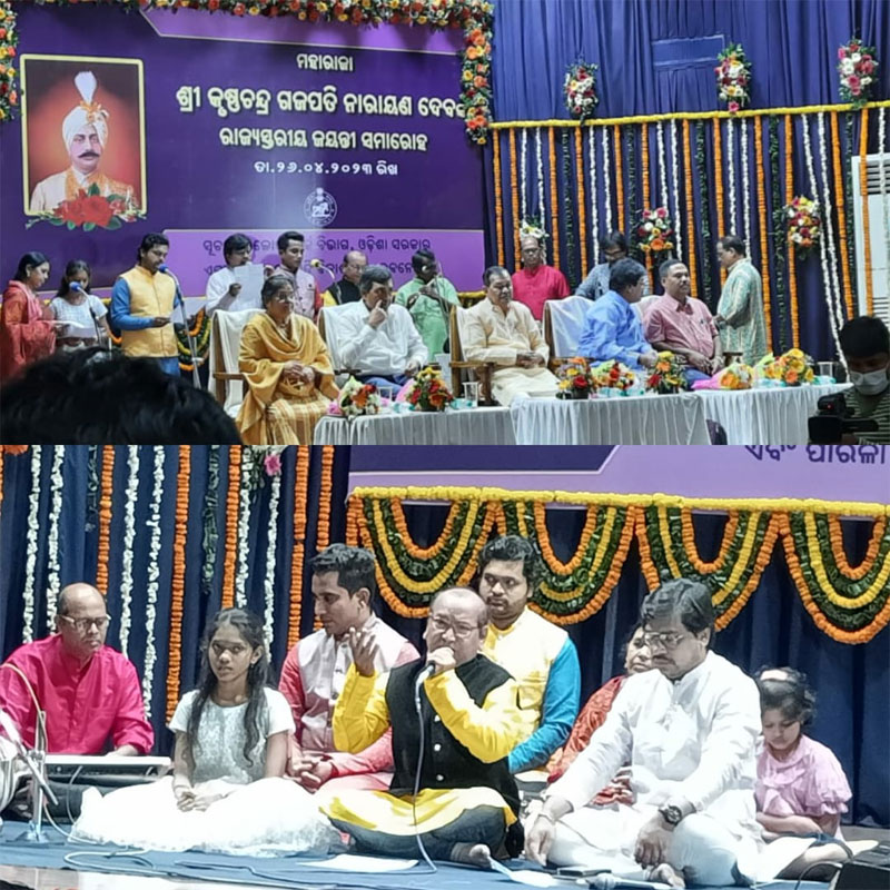 ପାରଳାଖେମୁଣ୍ଡି / ବାଳକୃଷ୍ଣ ପାଣିଗ୍ରାହୀ : ଭୁବନେଶ୍ୱର ସ୍ଥିତ ଜୟଦେବ ଭବନ ଠାରେ ରାଜ୍ଯ ସୂଚନା ଓ ଲୋକସମ୍ପର୍କ ବିଭାଗ ଓ ପାରଳା ଗଜପତି ବିକାଶ ମଞ୍ଚର ମିଳିତ ଆନୁକୁଲ୍ୟରେ ପାରଳା ମହାରାଜା ଶ୍ରୀ କୃଷ୍ଣଚନ୍ଦ୍ର ଗଜପତି ନାରାୟଣ ଦେବଙ୍କ ରାଜ୍ୟସ୍ତରୀୟ ଜୟନ୍ତୀ ଅବସରରେ ଗୁରୁ ଶ୍ରୀ ରଘୁନାଥ ପାତ୍ରଙ୍କ ନେତୃତ୍ବରେ ପାରମ୍ପରିକ ଭଜନ ସଙ୍ଗୀତ ଭକ୍ତି ନୈବେଦ୍ୟ ପରିବେଷଣ ହୋଇଯାଇଛି।