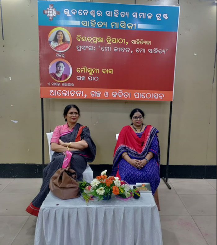 ଭୁବନେଶ୍ୱର: ଅନ୍ୟ ବିରୁଦ୍ଧରେ କାମ କରିବା ଅପେକ୍ଷା ଲେଖିବା ଭଲା ଲେଖିବାରେ ଆନନ୍ଦ ମିଳୋ ଜୀବନର ଅନୁଭବ ଥାଏା କଳା ଓ କାରିଗରୀ ଥାଏା ଜଣେ ଲେଖକ ତା'ର ବିଫଳତାକୁ ଗ୍ରହଣ କରିବା ଉଚିତ ବୋଲି ବିଶିଷ୍ଟ ସାହିତ୍ୟିକା ବିୟତପ୍ରଜ୍ଞା ତ୍ରିପାଠୀ ମତ ଦେଇଛନ୍ତିା ଆଜି ସନ୍ଧ୍ୟାରେ ଭୁବନେଶ୍ୱର ସାହିତ୍ୟ ସମାଜ ଟ୍ରଷ୍ଟ ଆନୁକୂଲ୍ୟରେ ଆୟୋଜିତ "ସାହିତ୍ୟ ମାସିକୀ'ରେ ଯୋଗଦେଇ ଶ୍ରୀମତୀ ତ୍ରିପାଠୀ "ମୋ ଜୀବନ: ମୋ ସାହିତ୍ୟ' ଶୀର୍ଷକ ବକ୍ତବ୍ୟ ପ୍ରଦାନ କରି ତାଙ୍କ ଲେଖକୀୟ ଜୀବନ, କୃତିତ୍ୱ, ଦୁର୍ବଳତା ଓ ପାଠକୀୟ ପ୍ରତିକ୍ରିୟା ନେଇ ଉଲ୍ଲେଖ କରିଥିଲୋ