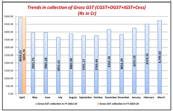 ୨୦୨୩ ଏପ୍ରିଲ ମାସରେ ଓଡିଶାର ସର୍ବକାଳୀନ ସର୍ବାଧିକ ମୋଟ ୫୦୩୫.୭୪ କୋଟି ଟଙ୍କା ଜିଏସଟି ଆଦାୟ