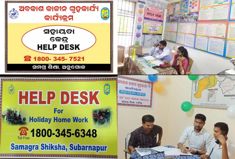 ଶିକ୍ଷାର୍ଥୀମାନଙ୍କ ପାଠ୍ୟକ୍ରମ ସମ୍ବନ୍ଧିତ ସମସ୍ୟାର ସମାଧାନ ପାଇଁ ପ୍ରତ୍ୟେକ ଜିଲ୍ଲାରେ ସହୟତା କେନ୍ଦ୍ର (Help Desk Cell) ଖୋଲାଯାଇ ପ୍ରତିଦିନ ୪ ଜଣ ବିଷୟଭିତ୍ତିକ ଓ ଅଭିଜ୍ଞ ଶିକ୍ଷକକୁ ନିୟୋଜିତ କରାଯାଇଅଛିା ଏହି କାର୍ଯ୍ୟକ୍ରମ ମଇ ୧ ତାରିଖରୁ ସରକାରୀ ଛୁଟିଦିନ ବ୍ୟତୀତ ଅନ୍ୟ ସମସ୍ତ କାର୍ଯ୍ୟଦିବସରେ ସକାଳ ୬.୦୦ଘଟିକା ରୁ ସନ୍ଧ୍ୟା ୬.୦୦ ଘଟିକା ପର୍ଯ୍ୟନ୍ତ ଦୁଇଟି ପର୍ଯ୍ୟାୟରେ କାର୍ଯ୍ୟକାରୀ ହେବା ପ୍ରତ୍ୟେକ ଶିକ୍ଷାର୍ଥୀ ପାଖରେ ସହୟତା କେନ୍ଦ୍ରର ସୁବିଧା ପହଞ୍ଚାଇବା ପାଇଁ ଦେୟମୁକ୍ତ ନମ୍ବର (Toll Free Number)ର ବ୍ୟବସ୍ଥା କରାଯାଇଅଛିା ଏହି ଦେୟମୁକ୍ତ ନମ୍ବରକୁ (Toll Free Number) ଶିକ୍ଷାର୍ଥୀମାନେ ସେମାନଙ୍କର ଅବକାଶକାଳୀନ ଗୃହକାର୍ଯ୍ୟ ସମ୍ବନ୍ଧିତ ପ୍ରଶ୍ନ ସିଧାସଳଖ ପଚାରିପାରିବେ ଏବଂ ସହୟତା କେନ୍ଦ୍ର (Help Desk Cell)ରେ ନିୟୋଜିତ ଶିକ୍ଷକଶିକ୍ଷୟିତ୍ରୀମାନେ ଶିକ୍ଷାର୍ଥୀମାନଙ୍କର ପାଠ୍ୟକ୍ରମ ସମ୍ବନ୍ଧିତ ସମସ୍ୟାର ସମାଧାନ କରିବୋ