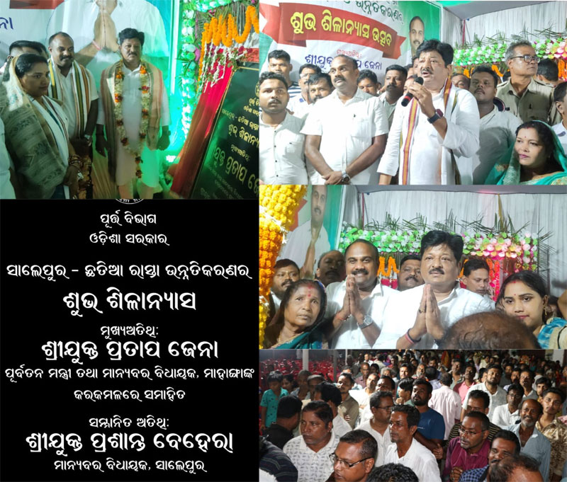 (ମାହାଙ୍ଗା -ଦେବେନ୍ଦ୍ର ଷଡ଼ଙ୍ଗୀ) : ମୁଖ୍ୟମନ୍ତ୍ରୀ ନବୀନ ପଟ୍ଟନାୟକ ଙ୍କ ସ୍ୱଚ୍ଛ, ନିର୍ମଳ ଶାସନ ରେ ଅନୁପ୍ରାଣିତ ପୂର୍ବତନ ମନ୍ତ୍ରୀ ତଥା ମାହାଙ୍ଗା ବିଧାୟକ ପ୍ରତାପ ଜେନାଙ୍କ ଦୃଢ ପ୍ରଚେଷ୍ଟା, ଉଦ୍ୟମ ଯୋଗୁଁ ମାହାଙ୍ଗା ବ୍ଲକ ଏବଂ ସାଲେପୁର ବ୍ଲକ ଅଂଚଳବାସୀ ଙ୍କ ପାଇଁ ଗମନାଗମନ କ୍ଷେତ୍ରରେ ଆଉ ଏକ ନୂତନ ଅଧ୍ୟାୟ ଯୋଡି ହେବାକୁ ଯାଉଛି l ଏହି ଅବସରରେ ସମଗ୍ର ଅଞ୍ଚଳବାସୀଙ୍କ ମହଲରେ ଆନନ୍ଦ ଖେଳିଯାଇଛି l ଏହି ରାସ୍ତା ହେବା ଦ୍ୱାରା ମାହାଙ୍ଗା, ସାଲେପୁର ସମେତ ବହୁ ନିର୍ବାଚନ ମଣ୍ଡଳୀର ଜନସାଧାରଣ ଗମନାଗମନ କ୍ଷେତ୍ରରେ ବିଶେଷ ଉପକୃତ ହେବେ l ଏହା ନେଇ ଏକ ଶିଳାନ୍ୟାସ ଉତ୍ସବ ମାହାଙ୍ଗା ଠାରେ ଅନୁଷ୍ଠିତ ହୋଇଯାଇଛି l ଏହି କାର୍ଯ୍ୟକ୍ରମ ରେ ମୁଖ୍ୟଅତିଥି ଭାବେ ବିଧାୟକ ପ୍ରତାପ ଜେନା ଏବଂ ସମ୍ମାନିତ ଅତିଥି ଭାବେ ସାଲେପୁର ବିଧାୟକ ପ୍ରଶାନ୍ତ ବେହେରା ଯୋଗଦାନ କରି ରାସ୍ତାର ଉନ୍ନତିକରଣ କାର୍ଯ୍ୟ ପାଇଁ ଶୁଭ ଶିଳାନ୍ୟାସ କରିଥିଲେ l