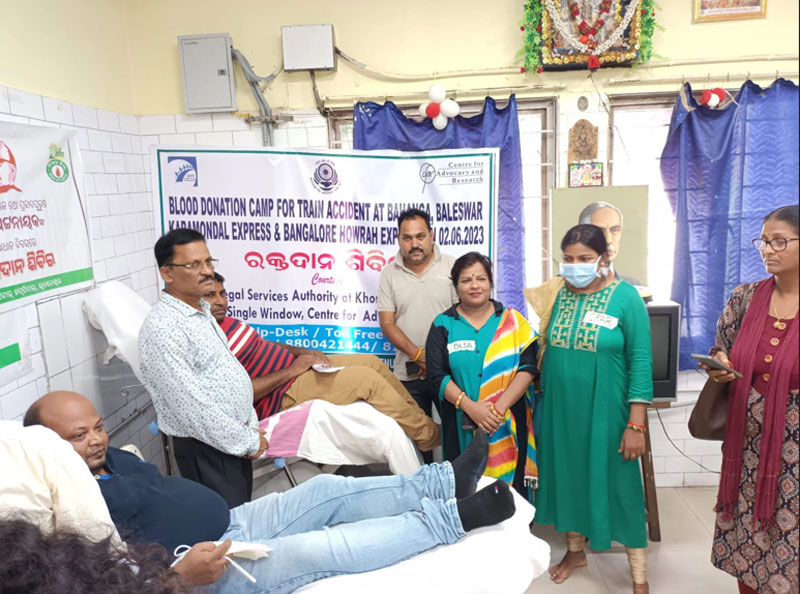 ଭୁବନେଶ୍ୱର: କରମଣ୍ଡଳ ଏକ୍ସପ୍ରେସ୍ ଓ ବାଙ୍ଗାଲୁରୁ-ହାଓ୍ୱାଡ଼ା ଏକ୍ସପ୍ରେସ୍ ଦୁର୍ଘଟଣାରେ ମୃତାହତ ଏବଂ ଅତି ଗୁରୁତର ଆହତ ହୋଇଥିବା ଜନସାଧାରଣ ଓ ତାଙ୍କର ଆତ୍ମୀୟସ୍ୱଜନ ପରିବାରଙ୍କ ପାଇଁ ଜିଲ୍ଲା ଆଇନସେବା ପ୍ରାଧିକରଣଙ୍କ ସଚିବ ସୌଦାମିନୀ ସିଂଙ୍କ ନିର୍ଦ୍ଦେଶରେ ସ୍ଥାନୀୟ ସି.ଏଫ୍.ଆର୍ ସେ୍ୱଚ୍ଛାସେବୀ ସଂଗଠନଙ୍କ ସହାୟତାରେ ଜନସାଧାରଣଙ୍କୁ ୨୪ ଘଣ୍ଟା ସହାୟତା ପ୍ରଦାନ କରିବା ପାଇଁ ଏକ ସହାୟତା ପ୍ରକୋଷ୍ଠ କ୍ୟାପିଟାଲ୍ ହସ୍ପିଟାଲ୍, ଭୁବନେଶ୍ୱରଠାରେ ଉଦ୍ଘାଟିତ ହେବା ସହ ଉକ୍ତ ରେଳ ଦୁର୍ଘଟଣାରେ ଗୁରୁତର ଆହତ ବ୍ୟକ୍ତିଙ୍କୁ ମାଗଣାରେ ରକ୍ତ ପ୍ରଦାନ ପାଇଁ ପ୍ରାଧିକରଣଙ୍କ ପକ୍ଷରୁ ଏକ ରକ୍ତଦାନ ଶିବିର ଅନୁଷ୍ଠିତ କରାଯାଇ ପ୍ରଶାସନକୁ ପ୍ରଦାନ କରାଯାଇଥିଲାା