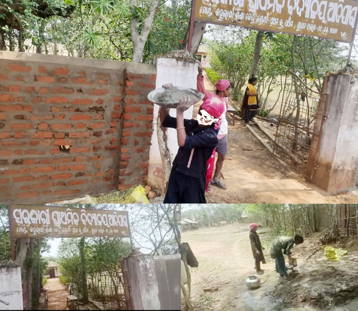 ବିଦ୍ୟାଳୟ ପାଚେରି ନିର୍ମାଣ କାର୍ଯ୍ୟ ରେ ଶିଶୁ ଶ୍ରମିକ।