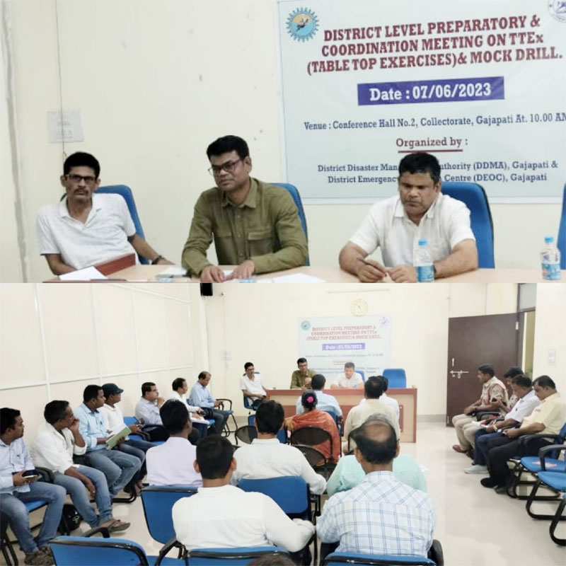 ପାରଳାଖେମୁଣ୍ଡି / ବାଳକୃଷ୍ଣ ପାଣିଗ୍ରାହୀ : ଗଜପତି ଜିଲ୍ଲା ସଦର ମହକୁମା ଠାରେ ଜିଲ୍ଲାସ୍ତରୀୟ ବିପର୍ଯ୍ୟୟ ପରିଚାଳନା ଅଭ୍ୟାସ ନିମନ୍ତେ ଏକ ପ୍ରସ୍ତୁତି ବୈଠକ ସ୍ଥାନୀୟ ଜିଲ୍ଲାପାଳକଙ୍କ ସମ୍ମିଳନୀ କକ୍ଷ ଠାରେ ଅନୁଷ୍ଠିତ ହୋଇଯାଇଛି।