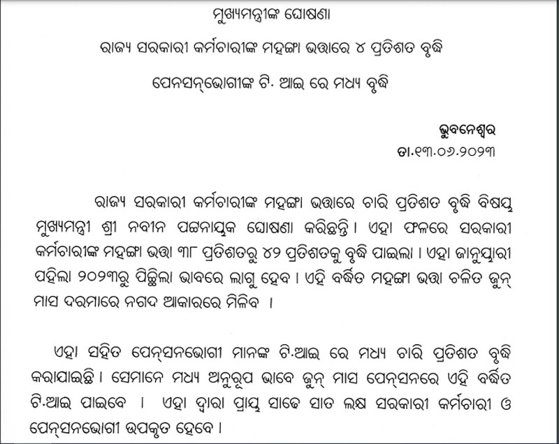 ରାଜ୍ୟ ସରକାରୀ କର୍ମଚାରୀଙ୍କୁ ସରକାରଙ୍କ ରଜ ଉପହାର 13 June 2023 Hits: 461 Rating: ( 0 Rating ) User Rating: 0 / 5 Please Rate Vote 1 Vote 2 Vote 3 Vote 4 Vote 5 000s2sdefault twitter twitter facebook google plus whatsapp share