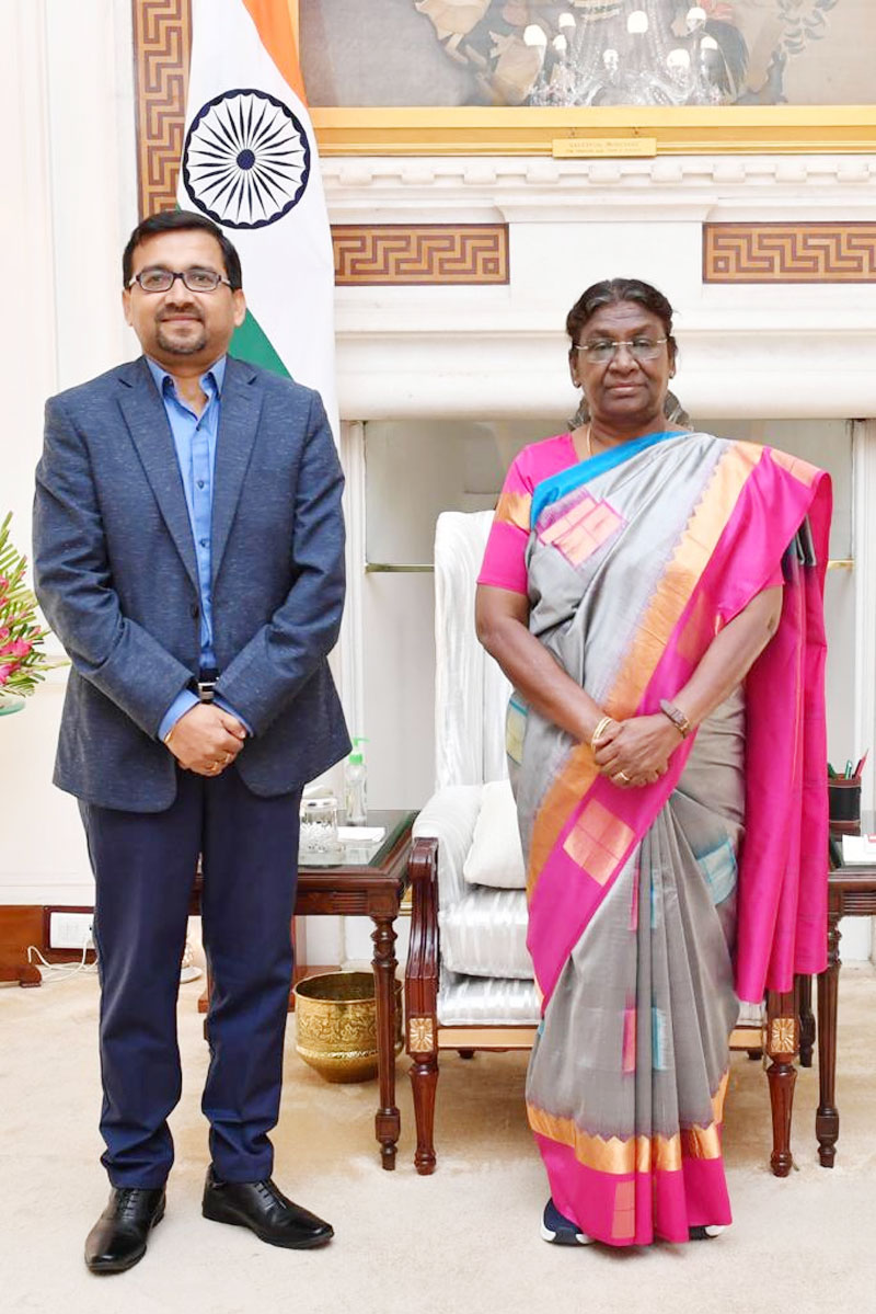 ଭୁବନେଶ୍ୱର : ପହିଲି ରଜ ଦିନ ଭାରତର ମହାମହିମ ରାଷ୍ଟ୍ରପତି ଶ୍ରୀମତୀ ଦ୍ରୌପଦୀ ମୁର୍ମୁଙ୍କୁ ସାକ୍ଷାତ କରିଥିଲେ ପିପିଏଲ କର୍ପୋରେଟ ବ୍ୟାପାର ମୁଖ୍ୟ ସୁଧୀର ରଞ୍ଜନ ମିଶ୍ର | ନୂଆଦିଲ୍ଲୀ ସ୍ଥିତ ରାଷ୍ଟ୍ରପତି ଭବନ ଠାରେ ମହାମହିମ ରାଷ୍ଟ୍ରପତିଙ୍କ ସହ ଏହି ସୌଜନ୍ୟମୂଳକ ସାକ୍ଷାତ ଅତ୍ୟନ୍ତ ସୌହାର୍ଦ୍ଦ୍ୟପୂର୍ଣ୍ଣ ଥିଲା | ସାକ୍ଷାତ ସମୟରେ ଶ୍ରୀ ମିଶ୍ର ମହାମହିମ ରାଷ୍ଟ୍ରପତିଙ୍କୁ ବିଦ୍ୟାଦାୟିନୀ ବରଦାଙ୍କ ଏକ ମୂର୍ତ୍ତୀ ଉପହାର ସ୍ୱରୂପ ପ୍ରଦାନ କରିଥିଲେ | ଦେଶର ସର୍ବୋଚ୍ଚ ପଦବୀରେ ଆସୀନ ମହାମହିମ ରାଷ୍ଟ୍ରପତି ଯେଉଁଭଳି ଆମାୟିକ ସୌଜନ୍ୟତା ପ୍ରଦର୍ଶନ କଲେ ତାହା ତାଙ୍କୁ ଅତ୍ୟନ୍ତ ପ୍ରଭାବିତ କରିଛି ଓ ରାଷ୍ଟ୍ରପତିଙ୍କୁ ସାକ୍ଷାତ କରି ସେ ଗର୍ବିତ ବୋଲି କହିଛନ୍ତି ଶ୍ରୀ ମିଶ୍ର |