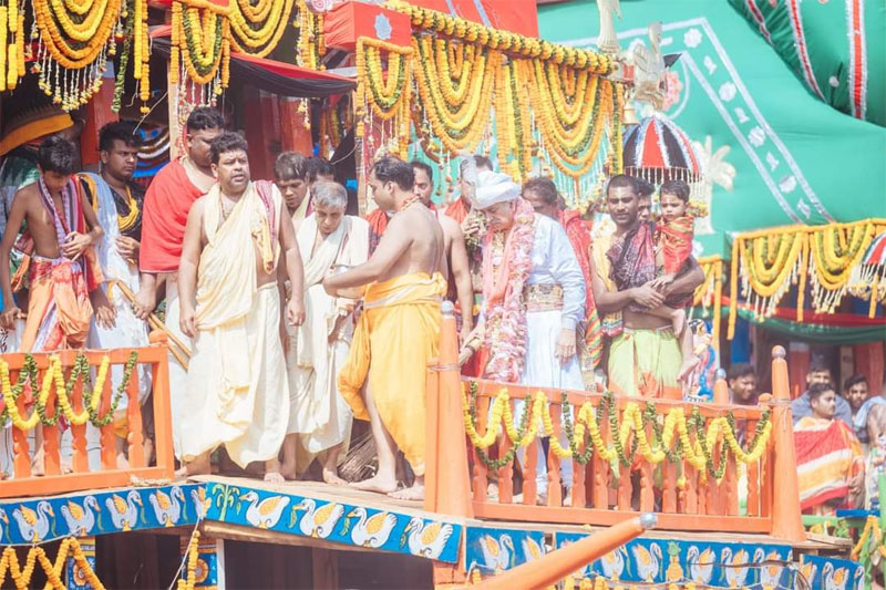 ସହଳ ନିଶିକାନ୍ତି ସାରି ସକାଳ ୮.୩୦ ରେ ପହଣ୍ଡି ବିଜେ ଆରମ୍ଭ କରାଯାଇଥିଲା । ପ୍ରଥମେ ଚକ୍ରରାଜ ସୁଦର୍ଶନଙ୍କୁ ପହଣ୍ଡି କରାଯିବା ପରେ ଗୋଟି ପହଣ୍ଡିରେ ବଡଭାଇ ବଳଭଦ୍ରଙ୍କୁ ତାଳଧ୍ଵଜ, ଭଉଣୀ ସୁଭଦ୍ରାଙ୍କୁ ଦର୍ପଦଳନ ଓ ମହାପ୍ରଭୁ ଜଗନ୍ନାଥଙ୍କୁ ନନ୍ଦିଘୋଷ ରଥରେ ବିରାଜିତ କରାଯାଇଥିଲା । ପରେ ଗଜପତି ମହାରାଜ ଦିବ୍ୟସିଂହ ଦେବ ତାମ୍ରଯାନରେ ଆସି ତିନି ରଥରେ ଛେରା ପହଁରା ଓ ରାଜନିତୀ ପରମ୍ପରା କରିଥିଲେ । ପରେ ଅପରାହ୍ନ ୩ ଟାରେ ବଡଭାଇ ବଳଭଦ୍ରଙ୍କ ରଥଟଣା ହୋଇଥିଲା । ପରେ ପରେ ଭଉଣୀ ସୁଭଦ୍ରାଙ୍କ ରଥ ଓ ୪. ୫୦ରେ ମହାପ୍ରଭୁ ଜଗନ୍ନାଥଙ୍କ ରଥ ଟଣା ହୋଇଥିଲା । ଲକ୍ଷ ଲକ୍ଷ ଲୋକ ମହାପ୍ରଭୁଙ୍କ ରଥକୁ ଜଗନ୍ନାଥଙ୍କ ନାମ ନେଇ ଟାଣୁଥିବା ବେଶ ମନୋରମ ଥିଲା । ଲାଗୁଥିଲା ଯେପରି ଜଗନ୍ନାଥ ନାମରେ ଭକ୍ତଙ୍କୁ ଏକ ଅପୂର୍ବ ଶକ୍ତି ମିଳୁଥିଲା ।