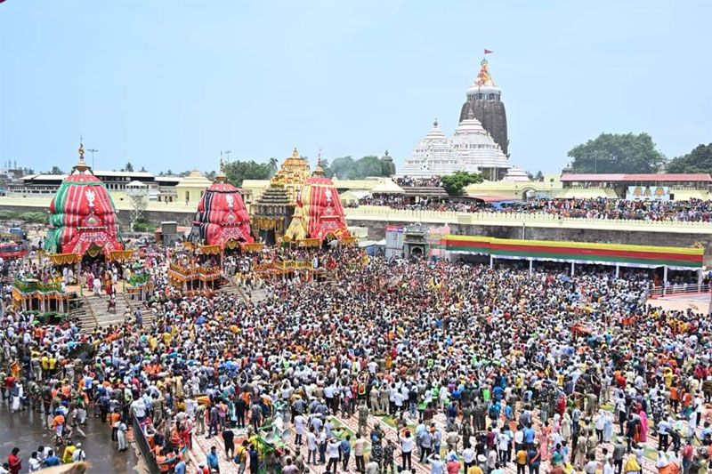 ପୁରୀ/ଅନିମେଷ ପଟ୍ଟନାୟକ : ପବିତ୍ର ବଡଦାଣ୍ଡରେ ଏକାକାର ହେଲେ ଭକ୍ତ ଓ ଭଗବାନ। ଘଣ୍ଟ ଘଣ୍ଟା, ଶଙ୍ଖ, କାହାଳୀର ନାଦରେ ପ୍ରକମ୍ପିତ ହୋଇଥିଲା ବଡଦାଣ୍ଡ । ଲୋକାରଣ୍ୟ ବଡଦାଣ୍ଡରେ ଗୁଞ୍ଜରିତ ହେଉଥିଲା ଜୟ ଜଗନ୍ନାଥ ଧ୍ୱନି । ପ୍ରଚଣ୍ଡ ଖରା ଓ ଗୁଳୁଗୁଳି ସତ୍ୱେ ଅସଂଖ୍ୟ ଭକ୍ତଙ୍କ ସମାଗମ ହୋଇଥିଲା । ନିର୍ଦ୍ଧାରିତ ସମୟ ପୂର୍ବରୁ ପହଣ୍ଡି ଓ ରଥଟଣା କରାଯାଇଥିଲେ ବି ଗୁଣ୍ଡିଚାଘରେ ପହଞ୍ଚିପାରିଲେନି ମାଆ ସୁଭଦ୍ରା ଓ ଭାଇ ଜଗନ୍ନାଥ।