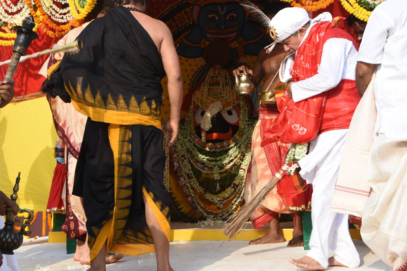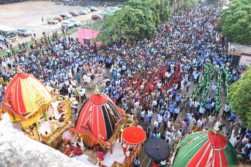ଭୁବନେଶ୍ୱର, ୨୦ ।୬: ପ୍ରତିବର୍ଷ ପରି କିସ୍ ଶ୍ରୀବାଣୀ କ୍ଷେତ୍ରରେ ବିଶ୍ୱ ପ୍ରସିଦ୍ଧ ଘୋଷଯାତ୍ରା ମହାସମାରୋହରେ ସଂପନ୍ନ ହୋଇଯାଇଛି । ପୂର୍ବାହ୍ନରେ ମଙ୍ଗଳ ଆରତି, ମଇଲମ, ତଡ଼ପଲାଗି, ରୋଷ ହୋମ, ଅବକାଶ, ସୂର୍ଯ୍ୟପୂଜା ଓ ରଥ ପ୍ରତିଷ୍ଠା ଆଦି ନୀତିକାନ୍ତି ନିର୍ଦ୍ଧାରିତ ନୀତି ନିର୍ଘଣ୍ଟ ଅନୁସାରେ ସଂପନ୍ନ ହେବା ପରେ କିଟ୍ ମନ୍ଦିର ଟ୍ରଷ୍ଟ ପ୍ରତିଷ୍ଠାତା ଅଚୁ୍ୟତ ସାମନ୍ତଙ୍କ ଦ୍ୱାରା ଅପରାହ୍ନ ୩ଟା ୩୦ ମିନିଟ୍ରେ ଛେରା ପହଁରା ନୀତି ସଂପନ୍ନ ହୋଇଥିଲା । ଅପରାହ୍ନ ୪ଟା ୩୦ମିନିଟ୍ରେ ଭକ୍ତମାନେ ପ୍ରଭୁ ବଳଭଦ୍ର, ଦେବୀ ସୁଭଦ୍ରା ଓ ମହାପ୍ରଭୁ ଜଗନ୍ନାଥଙ୍କ ରଥକୁ ନବନିର୍ମିତ ଗୁଣ୍ଡିଚା ମନ୍ଦିର ପର୍ଯ୍ୟନ୍ତ ଟାଣିଥିଲେ । ଘଣ୍ଟଘଣ୍ଟା, ମୃଦଙ୍ଗ, ଖୋଳ କରତାଳ ନିନାଦ ସହ ଜୟ ଜଗନ୍ନାଥ ଧ୍ୱନୀରେ ରଥଦାଣ୍ଡ ପ୍ରକମ୍ପିତ ହୋଇଥିଲା ।