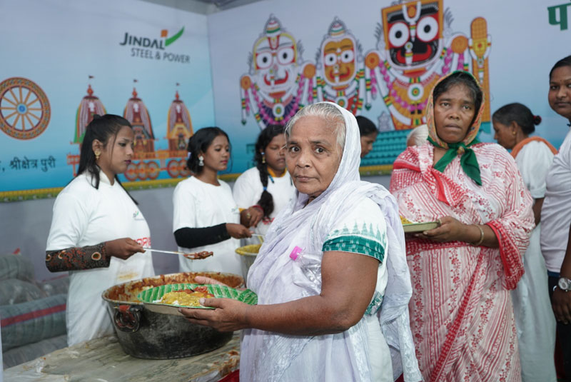 ଭୁବନେଶ୍ୱର (ଶାସକ ପ୍ରଶାସକ): ଜିନ୍ଦଲ ଷ୍ଟିଲ ଆଣ୍ଡ ପାୱାରର ସମାଜକଲ୍ୟାଣ ସଂସ୍ଥା ଜେଏସପି ଫାଉଣ୍ଡେସନ ପୁରୀର ବିଶ୍ୱ ପ୍ରସିଦ୍ଧ ଜଗନ୍ନାଥ ରଥ ଯାତ୍ରା ସମୟରେ ଏହାର ମିଶନ ଜିରୋ ହଙ୍ଗର କାର୍ଯ୍ୟକ୍ରମ ଅଧୀନରେ ବର୍ତ୍ତମାନ ପର୍ଯ୍ୟନ୍ତ ୩୦୦,୦୦୦ରୁ ଅଧିକ ଭକ୍ତଙ୍କୁ ସତେଜ ରନ୍ଧା ଖାଦ୍ୟ ପ୍ରଦାନ କରାଯାଇଛି । ଏହାର ଚେୟାରପର୍ସନ୍ ଶ୍ରୀମତୀ ଶାଲୁ ଜିନ୍ଦଲଙ୍କ ମାର୍ଗଦର୍ଶନରେ ଫାଉଣ୍ଡେସନ ପକ୍ଷରୁ ଭକ୍ତମାନଙ୍କୁ ଥଣ୍ଡା ପାନୀୟ ଜଳ ଏବଂ ଗ୍ଲୁକୋଜ ପ୍ୟାକେଟ୍ ମଧ୍ୟ ଯୋଗାଇ ଦିଆଯାଇଥିଲା ।