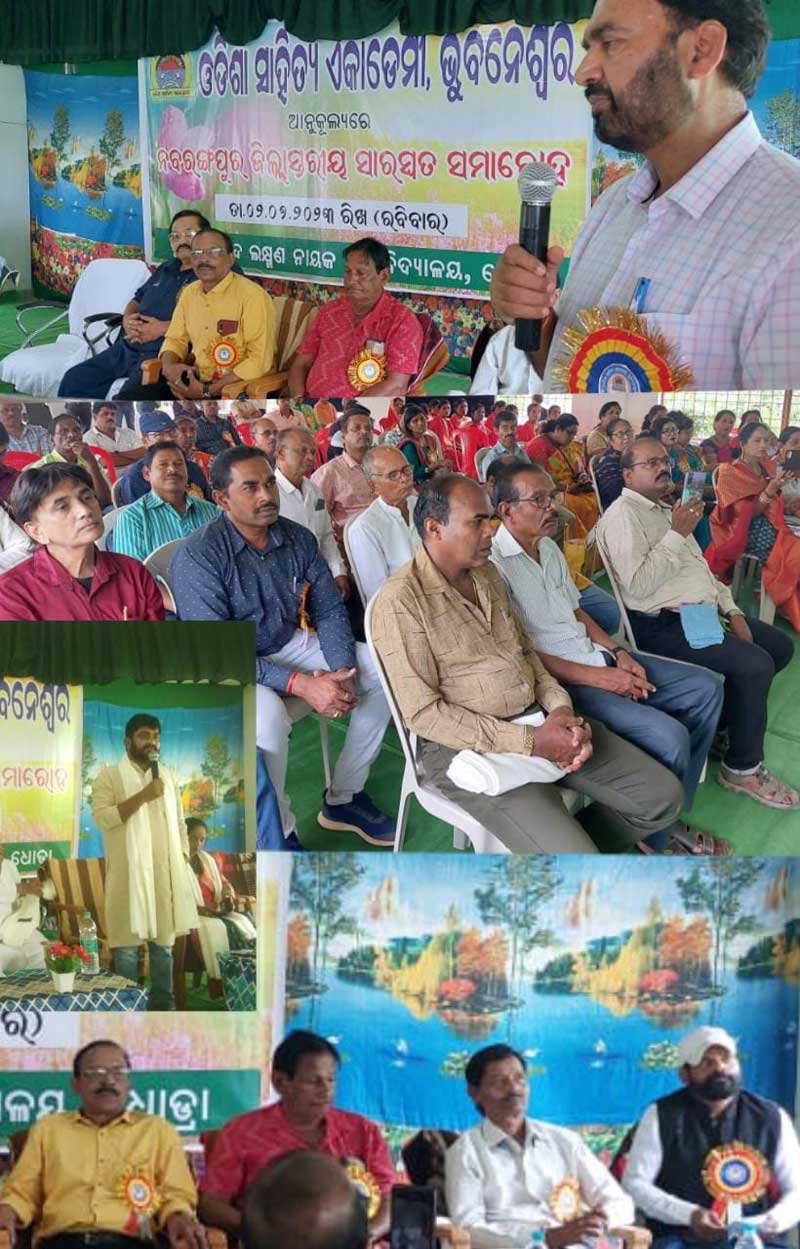 ନବରଙ୍ଗପୁର 03.07.2023: ଅଶୋକ ସାହୁ, ଶାସକ ପ୍ରଶାସକ.ଆଜି ଓଡିଶା ସାହିତ୍ୟ ଏକାଡେମୀ ଭୁବନେଶ୍ବର ପକ୍ଷରୁ ନବରଙ୍ଗପୁର ଜିଲ୍ଲା ସ୍ତରୀୟ ସାରସ୍ଵତ ସମାରୋହ ଅନୁଷ୍ଠିତ ହୋଇଯାଇଛି l ପ୍ରଥମ ଅଧିବେଶନ କବିତା ପାଠୋତ୍ସବ ରେ ସଭାପତି ସହଦେବ ପରିଡା, ବରେଣ୍ୟ ଅତିଥି ଶ୍ରୀମତୀ ଜେମାମଣି ବିଶୋଇ, ସୁଖିରାଜ ରାଉତ, ପ୍ରଭାତି ଦେବନାଥ ସ୍ଵତନ୍ତ୍ର ଅତିଥି ଭାବରେ ଓଡିଶା ରାଜସ୍ୱ ଅମଲା ସଂଘର ସଭାପତି ତ୍ରିପତି ବାଲାଜୀ ସାହୁ ଉପସ୍ଥିତ ଥିବା ବେଳେ ଶ୍ରୀମତୀ ସ୍ଵାଗତିକା ବାହିନିପତି, ରମେଶ ଚନ୍ଦ୍ର ଟାକ୍ରୀ, ଶ୍ରୀମତୀ ବିଷ୍ଣୁପ୍ରିୟା କରସୁଦ୍ଧା ପଟନାୟକ ସଂଯୋଜନା କରିଥିଲେ l ସନ୍ତୋଷ କୁମାର ଖମାରି ଧନ୍ୟବାଦ ଅର୍ପଣ କରିଥିଲେ l ଏହି କାର୍ଯ୍ୟକ୍ରମ କୁ ରତିକାନ୍ତ ଦୁବେ ପରିଚାଳନା କରିଥିଲେ l