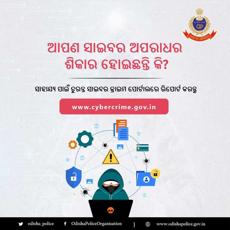 ସାଇବର ଅପରାଧୀମାନେ ସହଜ ଶିକାର ଖୋଜୁଛନ୍ତି। ଯଦି ଆପଣ ସାଇବର ଅପରାଧର ଶିକାର ହୋଇଛନ୍ତି, ତେବେ ସାହାଯ୍ୟ ପାଇଁ ତୁରନ୍ତ ସାଇବର କ୍ରାଇମ ପୋର୍ଟାଲରେ ରିପୋର୍ଟ କରନ୍ତୁ : http://cybercrime.gov.in