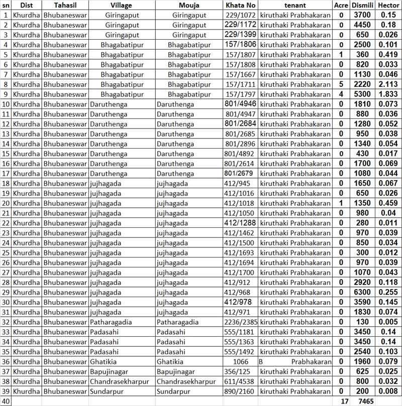 ଏଠି ମନେପକାଇଦେବାକୁ ଚାହୁଁ , ଏୟାରପୋର୍ଟ ନିକଟରେ ଠିକ ନବୀନ ନିବାସ ପଛକୁ ଲାଗି ଥିବା ମହାପ୍ରଭୁ ଲିଙ୍ଗରାଜଙ୍କ ୨୨୮ ଡେସିମିଲ୍ ଜମିକୁ ହୃଷିକେଶ ଦାସ ନାମକ ଜଣେ ବ୍ୟକ୍ତିଙ୍କଠୁ ୬.୪୫କୋଟି ଟଙ୍କାରେ କେ ପ୍ରଭାକରନ କ୍ରୟ କରି ସେଠାରେ ଏକ ହୋଟେଲ ନିର୍ମାଣ କରୁଥିଲେ । କିନ୍ତୁ ଏହାକୁ କିଛି ସ୍ବେଛାସେବୀ, ବୁଦ୍ଧିଜୀବୀ, ସ୍ଥାନୀୟ ଲୋକଙ୍କ ତୀବ୍ର ବିରୋଧ ଓ ଗଣମାଧ୍ୟମରେ ଖବର ପ୍ରସାରଣ ପରେ ଏହି ଜମି କିଣାବିକାକୁ ବୋର୍ଡ ଅଫ ରେଭନ୍ୟୁ ରଦ୍ଦ କରି ପୁରୁଣା ଖାତାକୁ ଫେରାଇ ନେଇଥିଲେ | ହେଲେ ତାହା ଏଯାବତ ମହାପ୍ରଭୁ ଲିଙ୍ଗରାଜଙ୍କ ରେକର୍ଡକୁ ଫେରିନଥିବା ସନ୍ଦେହ ସୃଷ୍ଟି କରିଛି |