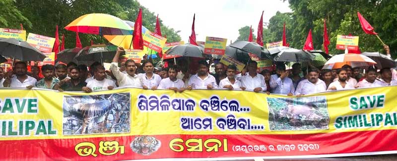 ଭୁବନେଶ୍ବର : ନୈସର୍ଗିକ ଶୋଭାର ଭଣ୍ଡାର ଭଞ୍ଜଭୂମି ମୟୂରଭଞ୍ଜର ଶିମିଳିପାଳ ଅଭ୍ୟାରଣ୍ୟ। ଏହା ଦିନକୁ ଦିନ ଅସୁରକ୍ଷିତ ହୋଇଯାଉଛି। ଏଥିପ୍ରତି ବନ ବିଭାଗ, ରାଜ୍ୟ ସରକାର କେହି ହେଲେ ଦୃଷ୍ଟି ଦେଉନାହାନ୍ତି। ଏହାର ସୁରକ୍ଷା ପାଇଁ ସୁଦୂର ମୟୁରଭଞ୍ଜରୁ ଆଜି ଭଂଜସେନା ପକ୍ଷରୁ ହଜାର ହଜାର ଲୋକ ଅବିଶ୍ରାନ୍ତ ବର୍ଷାରେ ଲୋୟର ପିଏମଜିରେ ଧାରଣା ଦେଇଥିଲେ। ଶିମିଳିପାଳର ସୁରକ୍ଷା ଆମର ଦାବି ସ୍ଲୋଗାନରେ କମ୍ପିଥିଲା ଧରଣାସ୍ଥଳ। ପ୍ରାକୃତିକ ସବୁଜିମା ନଷ୍ଟ ହେଉଥିଲା ହେଁ ନିଦାବିଷ୍ଣୁ ସାଜିଥିବା ନେତା, ମନ୍ତ୍ରୀଙ୍କ ଉପରେ ବର୍ଷିଥିଲେ ହଜାର ହଜାର ଜନତା।