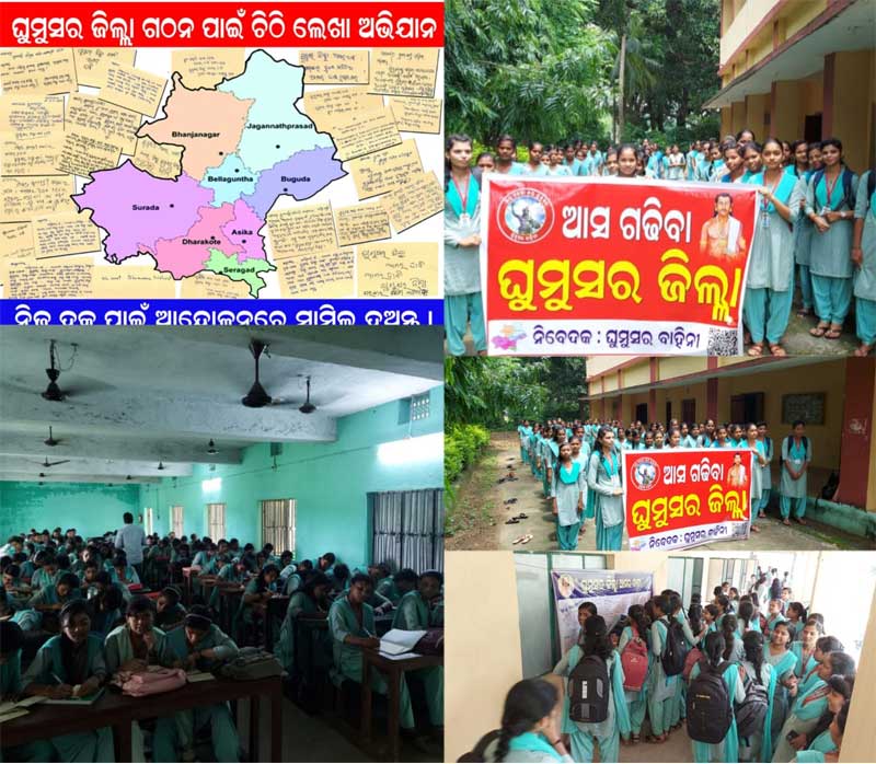 ଘୁମୁସର ଜିଲ୍ଲା ମାନ୍ୟତା ପାଇଁ ଚିଠି ଲେଖା ଅଭିଯାନରେ ସାମିଲ୍ ହେଲେ ସଂଖ୍ୟାଧିକ ଛାତ୍ରୀ।