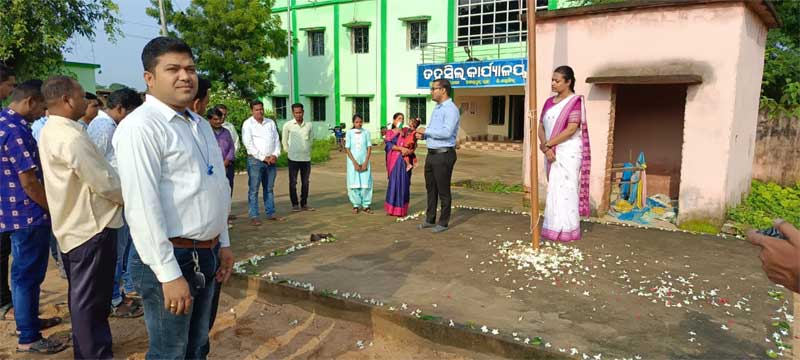 ଶାସକ ପ୍ରଶାସକ ରୁ ଗୁରୁ ଶଙ୍କର ପାଇକ -ବଲାଙ୍ଗୀର ଜିଲ୍ଲା ଆଗଲପୁର ତହସିଲ ତଥା ବ୍ଲକ ଅଂଚଳର ପ୍ରାୟ ସମସ୍ତ ସରକାରୀ ଅନୁଷ୍ଠାନରେ 77ତମ ସ୍ବାଧୀନତା ଦିବସ ପାଳିତ ହୋଇଯାଇଛି | ଆଗଲପୁର ତହସିଲ କାର୍ଯ୍ୟାଳୟ ରେ ତହସିଲଦାର ସୁଶ୍ରୀ ସରୋଜା ବେହେରା ଜାତୀୟ ପତଳା ଉତ୍ତୋଳନ କରି ସ୍ବାଧୀନତା ଦିବସର ମହତ୍ୱ ଉପରେ ଆଲୋକପାତ କରିଥିଲେ | ପୂର୍ବସୁରୀଙ୍କ ଅସୀମ ତ୍ୟାଗ ଓ ବଳିଦାନ ଦ୍ୱାରା ମିଳିଥିବା ଏହି ସ୍ୱାଧୀନତା ଯେପରି ବ୍ୟର୍ଥ ବା ନିରର୍ଥକ ନହୁଏ ସେଥିପାଇଁ ଆମ ସମସ୍ତଙ୍କୁ ସମର୍ପିତ ମାନସିକତା ନେଇ ସମ୍ମିଳିତ ଉଦ୍ୟମ କରିବାକୁ ପଡିବ ବୋଲି ତହସିଲଦାର ସୁଶ୍ରୀ ବେହେରା ଆହ୍ବାନ ଜଣାଇଥିଲେ | ଏହି ଅବସରରେ କାର୍ଯ୍ୟଳୟ ର ସମସ୍ତ କର୍ମଚାରୀ ତଥା ଅନ୍ୟମାନେ ଉପସ୍ଥିତ ଥିଲେ |