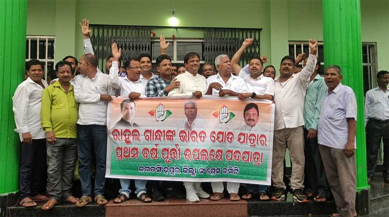ରାହୁଲ ଗାନ୍ଧୀଙ୍କ ଭାରତ ଯୋଡ଼ ଯାତ୍ରାର ପ୍ରଥମ ବର୍ଷ ପୂର୍ତ୍ତି ଅବସରରେ ଜଗତସିଂହପୁର ଜିଲ୍ଲା କଂଗ୍ରେସ ସଭାପତି ନଟବର ବାରିକଙ୍କ ନେତୃତ୍ୱରେ ପଦଯାତ୍ରା ଅନୁଷ୍ଠିତ