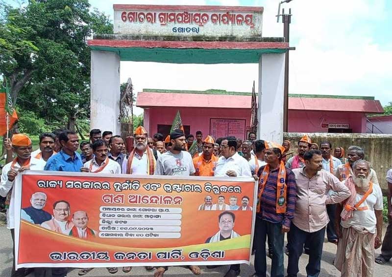 ରାଜ୍ୟ ସରକାରଙ୍କ ଦୁର୍ନିତି, ଭ୍ରଷ୍ଟାଚାର ବିରୁଦ୍ଧରେ ଗୋତରା ପଂଚାୟତ ସମ୍ମୁଖରେ ବିଜେପିର ଗଣ ଆନ୍ଦୋଳନ।