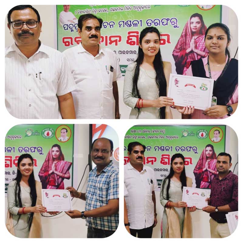 ପଦ୍ମପୁର :- ଦେଶର ଭବିଷ୍ୟତ ପିଢ଼ି ,ଦେଶର ଯୁବ ସମାଜ ନିଜର ସାମାଜିକ ଦାୟିତ୍ଵ ଓ କର୍ତ୍ତବ୍ୟ ପ୍ରତି ଯଥେଷ୍ଟ ସଚେତନ ଥିବା ସହିତ ସମାଜ ସେବା ପାଇଁ ମଧ୍ୟ ସର୍ବାଗ୍ରେ ଥିବାର ଆଭାସ ମିଳୁଛି । ଆଜି ଜଗତ ଜନନୀ ମାଁ ବିନ୍ଧ୍ୟବାସିନୀ ଙ୍କ ନାମରେ ନାମିତ , ପାଇକମାଲ ଯୁକ୍ତ ତିନି ମହାବିଦ୍ୟାଳୟ ପରିସରରେ ମହାବିଦ୍ୟାଳୟ ର NSS ୟୁନିଟ ଓ ଓଡ଼ିଶା ମୋ ପରିବାର ର ମିଳିତ ପ୍ରୟାସ ରେ ଅୟୋଜିତ ରକ୍ତଦାନ ଶିବିର ରେ ମହାବିଦ୍ୟାଳୟର ଛାତ୍ରଛାତ୍ରୀ ମାନଙ୍କ ମଧ୍ୟରେ ରକ୍ତ ର ଅଭାବ କୁ ଦୂର କରିବା ପାଇଁ ଛାତ୍ର ଛାତ୍ରୀ ମାନେ ରକ୍ତଦାନ କରିଛନ୍ତି l ବିଧାୟିକା ବର୍ଷା ସିଂ ବରିହା ଯୋଗଦେଇ ଶିବିରକୁ ଉଦଘାଟନ କରି ମୁଖ୍ୟତଃ ଏହି ଶିବିର ରେ ଛାତ୍ରୀ ମାନଙ୍କ ଉତ୍ସାହ ଅନ୍ୟ ଅନୁଷ୍ଠାନ ମାନଙ୍କୁ ରକ୍ତଦାନ ପ୍ରତି ନିଶ୍ଚିତ ଭାବରେ ପ୍ରେରଣା ଯୋଗାଇବ ବୋଲି କହିବା ସହିତ ଅୟୋଜକ ଓ ଛାତ୍ରଛାତ୍ରୀ ମାନଙ୍କୁ ଶୁଭେଚ୍ଛା ଓ ଧନ୍ୟବାଦ ଜଣାଇ ଥିଲେ l
