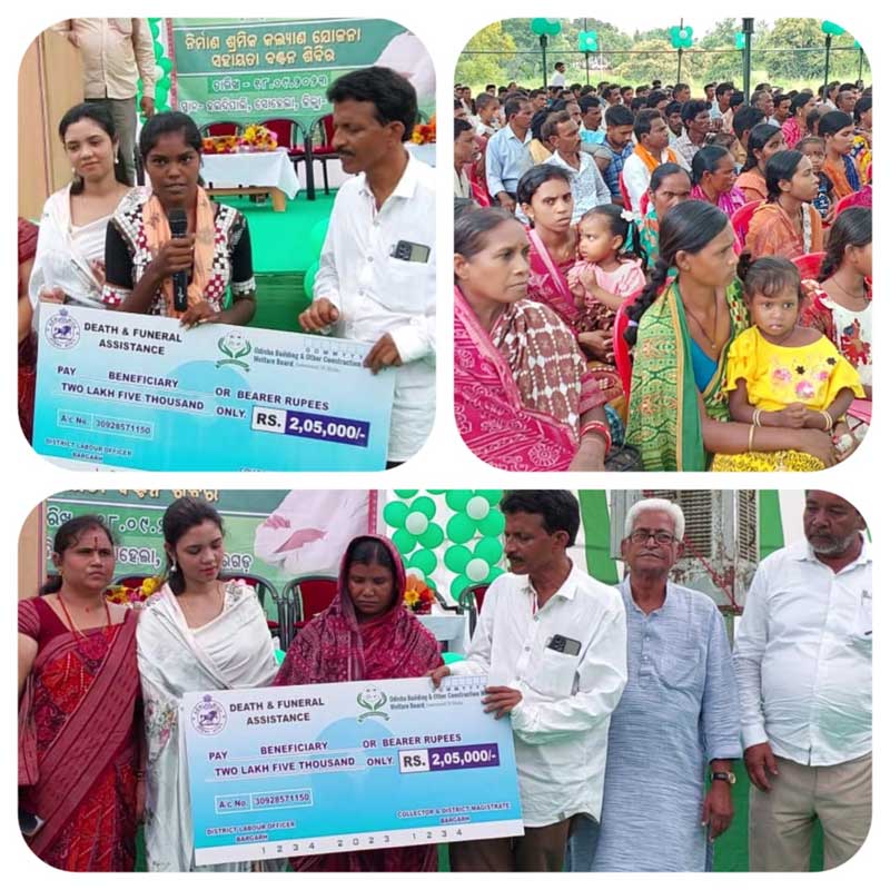 ଆଜି ସୋହେଲା ନିକଟସ୍ଥ ହଲଦୀପାଲି ପଡିଆଠାରେ ଓଡିଶା କୋଠାବାଡି ଏବଂ ଅନ୍ୟାନ୍ୟ ନିର୍ମାଣ ଶ୍ରମିକ କଲ୍ୟାଣ ବୋର୍ଡ ତଥା ଶ୍ରମ ଓ କର୍ମଚାରୀ ରାଜ୍ୟ ବୀମା ବିଭାଗ ପକ୍ଷରୁ ବରଗଡ଼ ଜିଲ୍ଲା ଭଟଲି ଓ ପଦ୍ମପୁର ନିର୍ବାଚନ ମଣ୍ଡଳୀର 968 ଜଣ ଯୋଗ୍ୟ ହିତାଧିକାରୀଙ୍କୁ ନିର୍ମାଣ ଶ୍ରମିକ କଲ୍ୟାଣ ଯୋଜନାରେ ଆର୍ଥିକ ସହାୟତା ପ୍ରଦାନ କରାଯାଇଥିଲା । ଏହି କାର୍ଯ୍ୟକ୍ରମ ରେ ପୂର୍ବତନ ମନ୍ତ୍ରୀ ତଥା ଭଟଲି ନିର୍ବାଚନ ମଣ୍ଡଳୀର ବିଧାୟକ ଶ୍ରୀ ସୁଶାନ୍ତ ସିଂ , ପଦ୍ମପୁର ନିର୍ବାଚନ ମଣ୍ଡଳୀର ବିଧାୟିକା ଶ୍ରୀମତୀ ବର୍ଷା ସିଂ ବରିହା ଯୋଗଦେଇ , 567 ଜଣ ହିତାଧିକାରୀ ଙ୍କୁ 2 କୋଟି 87 ଲକ୍ଷ ଟଙ୍କା ବୈବାହିକ ସହାୟତା ରାଶି ଭାବରେ ,105 ଜଣ ମୃତ ଶ୍ରମିକ ଙ୍କର ପରିବାର କୁ 2 କୋଟି ଚାରି ଲକ୍ଷ ଟଙ୍କା ମୃତ୍ୟୁକାଳୀନ ସହାୟତା ଭାବରେ , 178 ଜଣ ହିତାଧିକାରୀ ଙ୍କୁ ଦଶ ଲକ୍ଷ ଅଠସ୍ତରୀ ହଜାର ଟଙ୍କା ଉଚ୍ଚ ଶିକ୍ଷା ସହାୟତା ଓ ପାଞ୍ଚ ଜଣ ଙ୍କୁ ପ୍ରସୂତି କାଳୀନ ସହାୟତା 50 ହଜାର ଟଙ୍କା ପ୍ରଦାନ କରିଥିଲେ । ଏହି କାର୍ଯ୍ୟକ୍ରମ ରେ ଅନ୍ୟମାନଙ୍କ ମଧ୍ୟରେ ଭଟଲି ବ୍ଲକ ଅଧ୍ୟକ୍ଷ ଶ୍ରୀ ନିତ୍ୟାନନ୍ଦ ପ୍ରଧାନ, ଅମ୍ବାଭୋନା ବ୍ଲକ ଅଧ୍ୟକ୍ଷ ଶ୍ରୀ କୀର୍ତ୍ତି ଚନ୍ଦ୍ର ଦୁଆଁନ, ସୋହେଲା ବ୍ଲକ ଅଧ୍ୟକ୍ଷା ଶ୍ରୀମତୀ ବବି ପ୍ରଧାନ, ଜିଲ୍ଲା ପରିଷଦ ଶ୍ରୀମତୀ ରୋଜୀ ନାୟକ ଯୋଗ ଦେଇଥିଲେ । ଶ୍ରମ ବିଭାଗର ଜିଲ୍ଲା ଶ୍ରମ ଅଧିକାରୀ ମାନଭଞ୍ଜନ ପଧାନ ଓ ଅନ୍ୟ ଅଧିକାରୀମାନେ ଶିବିର ପରିଚାଳନା କରିଥିଲେ । ଆଜି ଏହି କାର୍ଯ୍ୟକ୍ରମ ରେ ବିବାହ ସହାୟତା, ମୃତ୍ୟୁକାଳୀନ ସହାୟତା, ଶିକ୍ଷା ସହାୟତା, ଅନ୍ତିମ ସଂସ୍କାର ସହାୟତା ଓ ପ୍ରସବ କାଳୀନ ସହାୟତା ମୋଟ 5କୋଟି 7 ଲକ୍ଷ 28 ହଜାର ଟଙ୍କାର ଆର୍ଥିକ ସହାୟତା ପ୍ରଦାନ କରାଯାଇଥିଲା