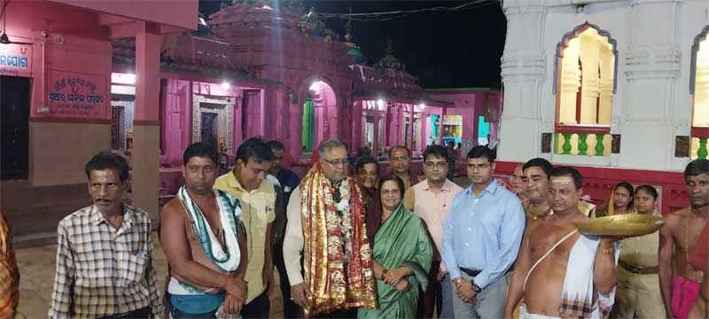 ଓଡ଼ଗାଁ(ଶ୍ରୀକାନ୍ତ କୁମାର ମିଶ୍ର): ଓଡିଶା ହାଇକୋର୍ଟର ଅନ୍ୟତମ ବରିଷ୍ଠତମ ବିଚାରପାଟି ତଥା ମୁଖ୍ୟବିଚାରପତି ଡେଜିଗନେଟ ଡ଼ ଜଷ୍ଟିସ ବିଦ୍ୟୁତ ରଞ୍ଜନ ଷଡଙ୍ଗୀ ସୋମବାର ସନ୍ଧ୍ୟାରେ ସପତ୍ନୀକ ଓଡ଼ଗାଁ ଗସ୍ତ କରି ପ୍ରଭୁ ଶ୍ରୀ ରଘୁନାଥଜୀଉଙ୍କ ଦର୍ଶନ କରିଛନ୍ତି। ସେ ଓଡ଼ଗାଁରେ ପହଞ୍ଚିବା ପରେ ପ୍ରଥମେ ଜାମୁପାଟଣା ଠାରେ ବିରାଜିତ ବାବା ଦୁତିକେଶ୍ୱର ମହାଦେବଙ୍କ ଦର୍ଶନ କରିଥିଲେ। ସେଠାରୁ ପୈତୃକ ଗାଁ ପନ୍ତିଖାରୀଶାସନରେ ଅବସ୍ଥିତ ଶ୍ରୀ ନୀଳକଣ୍ଠେଶ୍ୱରଙ୍କୁ ଦର୍ଶନ କରି ପୂଜାର୍ଚ୍ଚନା କରିବା ସହିତ ଗ୍ରାମବାସୀଙ୍କ ସହ ଦେଖା ଚାହାଁ ହୋଇଥିଲେ । ଓଡ଼ଗାଁରେ ପହଁଞ୍ଚି ପ୍ରଭୁ ରଘୁନାଥଙ୍କୁ ଦର୍ଶନ କରିଥିଲେ। ରଘୁନାଥଜୀଉଙ୍କ ପୂଜକ ପରିଷଦର କର୍ମକର୍ତ୍ତାମାନେ ପ୍ରଭୁଙ୍କ ନିକଟରେ ତାଙ୍କର ମଙ୍ଗଳ ମନାସିବା ସହିତ ପରିଷଦ ସଭାପତି ପ୍ରଫୁଲ୍ଲ କୁମାର ମହାପାତ୍ର ତାଙ୍କୁ ପଦଦର୍ଶନ କରାଇଥିଲେ।