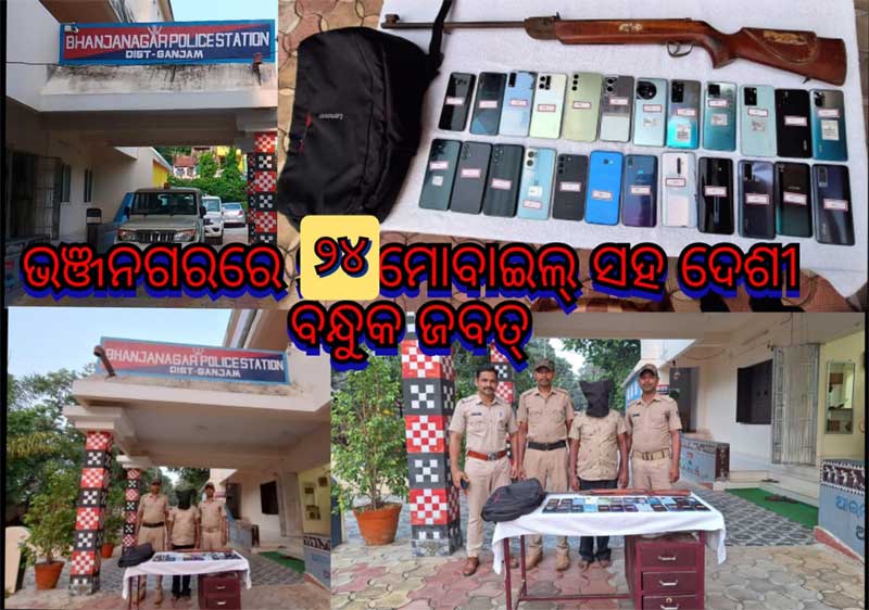 , ଭଞ୍ଜନଗର ପୋଲିସ ଦ୍ୱାରା ଚୋରି ମୋବାଇଲ ସହ ଦେଶୀ ବନ୍ଧୁକ ଜବତ୍
