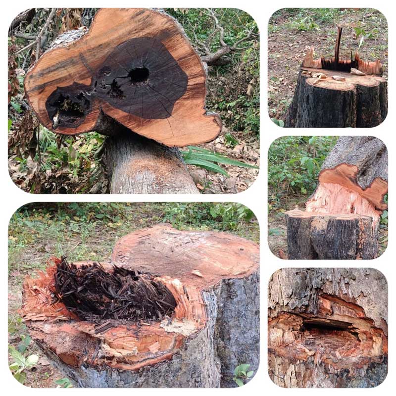 ଏଠାରେ ସୂଚନାଯୋଗ୍ୟ ଯେ ଆଜି ଜଙ୍ଗଲ ର କିଛି ଅଞ୍ଚଳରେ ଖୋଜିବା ଭିତରେ ପ୍ରାୟ କୋଡିଏ ଗୋଟି ସଦ୍ୟ କଟା ଯାଇଥିବା ଗଣ୍ଡି ବିହୀନ ଗଛ ଦେଖିବାକୁ ମିଳିଥିଲା । ଗଛ ର ତଳ ଓ ଉପର ଭାଗ ମହଜୁଦ ଥିବା ବେଳେ ଗଣ୍ଡି ଗୟବ ଥିଲା । ଆମକୁ ସୂଚନା ପ୍ରଦାନ କରିଥିବା କିଛି ଯୁବକ କହିଲେ ଯେ ଗତ ରାତି ଏକ ଟ୍ରାକ୍ଟର ସାହାଯ୍ୟ ରେ ଗଛ ସବୁ ପାର ହୋଇ ଯାଇଛି । ଜଙ୍ଗଲ ର ଅନେକ ସ୍ଥାନରେ ଟ୍ରାକ୍ଟର ଟାୟାର ର ଚିନ୍ହ ସ୍ପଷ୍ଟ ଭାବରେ ଦେଖା ଯାଉଥିଲା ।