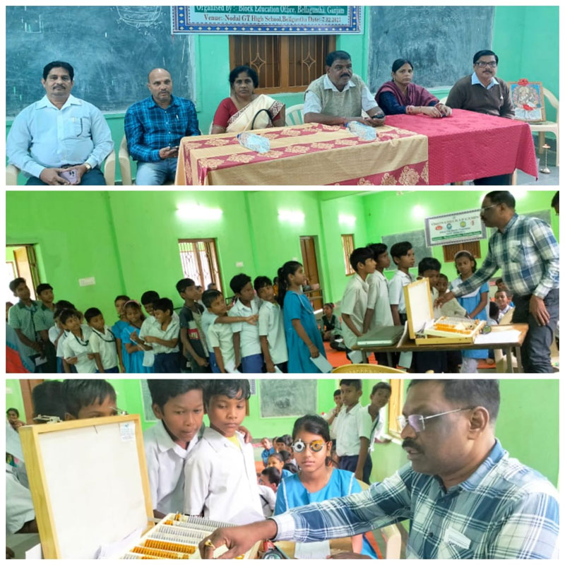 ବେଲଗୁଣ୍ଠା,-(ଶିବରାମ ଚୌଧୁରୀ )-, ବେଲଗୁଣ୍ଠା ଗୋଷ୍ଠୀ ଶିକ୍ଷା ଅଧିକାରୀ ପ୍ରସନ୍ନ କୁମାର ବେହେରାଙ୍କ ପ୍ରତ୍ୟେକ୍ଷ ତତ୍ତ୍ୱାବଧାନରେ ବ୍ଳକ୍ ର ନୋଡ଼ାଲ୍ ଘୁମୁସର ବୈଷୟିକ ଉଚ୍ଚ ବିଦ୍ୟାଳୟ,ଗୋବରା ବାସୁଦେବପୁର ବାଳିକା ଉଚ୍ଚ ବିଦ୍ୟାଳୟ ଏବଂ କ୍ଷତ୍ରିୟବରପୁର ନୋଡ଼ାଲ୍ ଉଚ୍ଚ ବିଦ୍ୟାଳୟ ପରିସରରେ ଗଞ୍ଜାମ ଜିଲ୍ଳା ସମଗ୍ର ଶିକ୍ଷା ଅଭିଯାନ ଆନୁକୂଲ୍ୟରେ ସୁନେତ୍ର କାର୍ଯ୍ୟକ୍ରମ ଅନୁଷ୍ଠିତ ହୋଇଯାଇଛି I ବେଲଗୁଣ୍ଠା ଘୁମୁସର ବୈଷୟିକ ଉଚ୍ଚ ବିଦ୍ୟାଳୟ ପରିସରରେ ଅନୁଷ୍ଠିତ କାର୍ଯ୍ୟକ୍ରମକୁ ଗୋଷ୍ଠୀ ଶିକ୍ଷା ଅଧିକାରୀ ଶ୍ରୀ ବେହେରା ଉଦ୍ଘାଟନ କରିଥିବାବେଳେ ଏଥିରେ ଅତିଥି ଭାବେ ଏବିଇଓ ଗୋବିନ୍ଦ ଚନ୍ଦ୍ର ପାଢୀ, ଭାଗ୍ୟଲତା ପ୍ରଧାନ,ପ୍ରତିଭା କୁମାରୀ ରଥ ଏବଂ ଜିଟି ହାଇସ୍କୁଲ ପ୍ରଧାନ ଶିକ୍ଷୟିତ୍ରୀ ପ୍ରତିମା ମହାରଣା ,ବରିଷ୍ଠ ଶିକ୍ଷକ ସନ୍ତୋଷ କୁମାର ପଟ୍ଟନାୟକ ପ୍ରମୁଖ ଉପସ୍ଥିତ ଥିଲେ I ବିଆରଟି ଚନ୍ଦ୍ରକାନ୍ତି ସୁନ୍ଦରା ଏବଂ ଆଲୋକ କୁମାର ବେହେରା କାର୍ଯ୍ୟକ୍ରମର ସଂଯୋଜନା କରିଥିଲେ I ବ୍ରହ୍ମପୁର ସିଟି ହସ୍ପିଟାଲ୍ ର ଚକ୍ଷୁ ବିଶେଷଜ୍ଞ ଡ଼ାକ୍ତର ସୁଶାନ୍ତ କୁମାର ବେହେରାଙ୍କ ତତ୍ତ୍ୱାବଧାନରେ ରମେଶ ଚନ୍ଦ୍ର ଦଳାଇ, ତପନ ପାତ୍ର, ଶୁଭଶ୍ରୀ ପାଳ, ସୃ୍ଷ୍ଟି ସାହୁ ପ୍ରମୁଖ ବେଲଗୁଣ୍ଠା ବ୍ଳକ୍ ର ସମସ୍ତ ଏଗାରଟି କ୍ଲଷ୍ଟର୍ ର ବିଭିନ୍ନ ବିଦ୍ୟାଳୟରୁ ଆସିଥିବା 894 ଜଣ ଛାତ୍ରଛାତ୍ରୀଙ୍କ ଚକ୍ଷୁ ପରୀକ୍ଷା କରିଥିଲେ I ସେଥିମଧ୍ୟରୁ 316 ଜଣ ଛାତ୍ରଛାତ୍ରୀଙ୍କୁ ଚଷମା ବଣ୍ଟନ କରାଯାଇଥିବା ବେଳେ ପନ୍ଦର ଜଣ ଛାତ୍ରଛାତ୍ରୀଙ୍କ ଚକ୍ଷୁରେ ଅସ୍ତ୍ରୋପଚାର ନିମନ୍ତେ ସୁପାରିଶ୍ କରାଯାଇଥିଲା I କାର୍ଯ୍ୟକ୍ରମରେ ସମସ୍ତ ଏଗାରଟି କ୍ଳଷ୍ଟର୍ ର ସିଆରସିସିଙ୍କ ସମେତ ଅନ୍ତର୍ନିବେଶୀ ଶିକ୍ଷା ସ୍ଵେଚ୍ଛାସେବୀ ରଙ୍କନିଧି ସ୍ୱାଇଁ, ହରିବନ୍ଧୁ ଦାଶ,ପ୍ରଭାତ କୁମାର ମହାରଣା, ସଂଯୁକ୍ତା କୁମାରୀ ସ୍ୱାଇଁ,ଲକ୍ଷ୍ମୀପ୍ରିୟା ଗୌଡ଼, ରାଜଲକ୍ଷ୍ମୀ ବିଷୋୟୀ ଏବଂ ନାରାୟଣ ସାହୁ ପ୍ରମୁଖ ସହଯୋଗ କରିଥିଲେ I