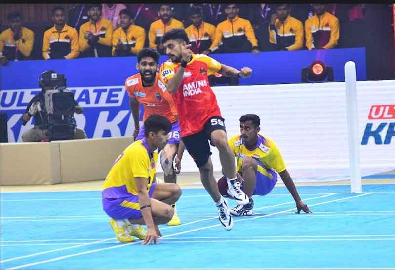କଟକ,୩ ଜାନୁଆରୀ ୨୦୨୪: ଅଲ୍ଟିମେଟ ଖୋ ଖୋ ସିଜନ ୨ରେ ଆଜି କଟକର ଜୱାହାରଲାଲ ନେହେରୁ ଇଣ୍ଡୋର ଷ୍ଟାଡିୟମରେ ଖେଳାଯାଇଥିବା ୨ୟ ମ୍ୟାଚ୍ରେ ଡିଫେଣ୍ଡିଙ୍ଗ ଚାମ୍ପିଅନ ଓଡିଶା ଜଗରନଟ୍ସ, ରାଜସ୍ଥାନ ୱାରିୟର୍ସ ବିରୋଧରେ ୩୨-୨୧ ପଏଂଟର ବଡ ବିଜୟ ହାସଲ କରିଛି । ଓଡିଶା ଜଗରନଟ୍ସର ପ୍ରତିରକ୍ଷାପୂର୍ଣ୍ଣ ପ୍ରଦର୍ଶନର ସମର୍ଥନରେ ଦଳ ଏହି ବିଜୟ ହାସଲ କରିପାରିଛି ଯେଉଁଥିରେ ଦଳକୁ ୧୦ଟି ଡ୍ରିମ ରନ ବୋନସ ପଏଂଟ ମିଳିଥିଲା । ପ୍ରଥମ ଟର୍ଣ୍ଣରେ ଓଡିଶାର ବିଶାଳ, ଗୌଥମ ଏମକେ ଓ ଦିଲ୍ଲୀପ ଖାଣ୍ଡଭି ୬ ମିନିଟ୍ ୨୨ସେକେଣ୍ଡ ପର୍ଯ୍ୟନ୍ତ ମ୍ୟାଟରେ ରହି ୭ଟି ଡ୍ରିମ ରନ ପଏଂଟ ହାସଲ କରିଥିଲେ । ସେହିପରି ଆଜିର ୧ମ ମ୍ୟାଚ୍ରେ ତେଲୁଗୁ ୟୋଦ୍ଧାସ, ମୁମ୍ବାଇ ଖିଲାଡିସକୁ ୪୦-୨୨ ପଏଂଟ୍ରେ ପରାଜିତ କରିଛି । ଏହା ଚଳିତ ସିଜନରେ ସବୁଠାରୁ ବଡ ମାର୍ଜିନରେ ହାସଲ କରାଯାଇଥିବା ବିଜୟ ଅଟେ । ଆସନ୍ତାକାଲି (ଗୁରୁବାର) ତେଲୁଗୁ ୟୋଦ୍ଧାସ, ଚେନ୍ନାଇ କ୍ୱିକ ଗନ୍ସ ବିରୋଧରେ ଏବଂ ଗୁଜରାଟ ଜିଆଂଟ୍ସ, ରାଜସ୍ଥାନ ୱାରିୟର୍ସ ବିରୋଧରେ ପ୍ରତିଦ୍ୱନ୍ଦିତା କରିବ ।